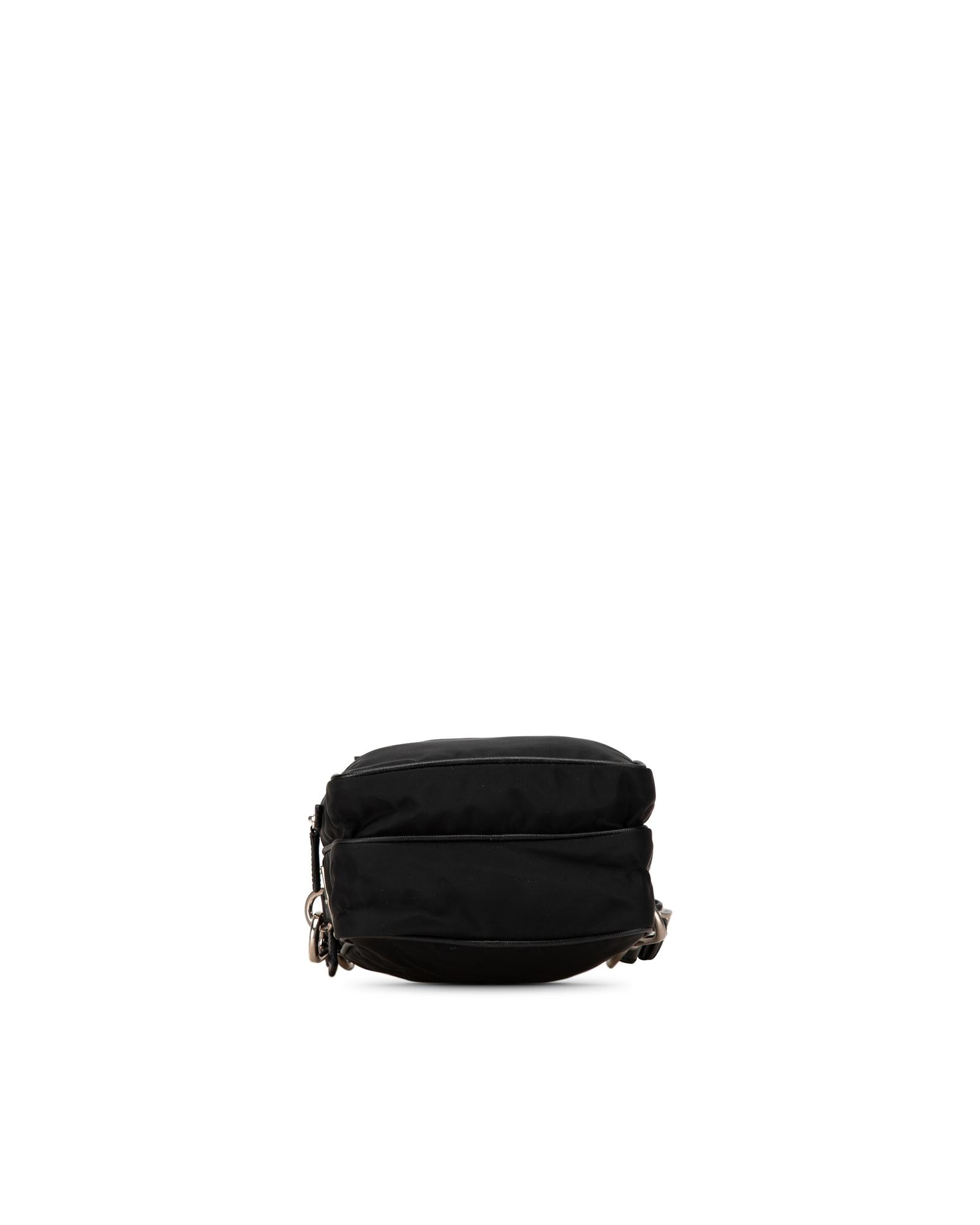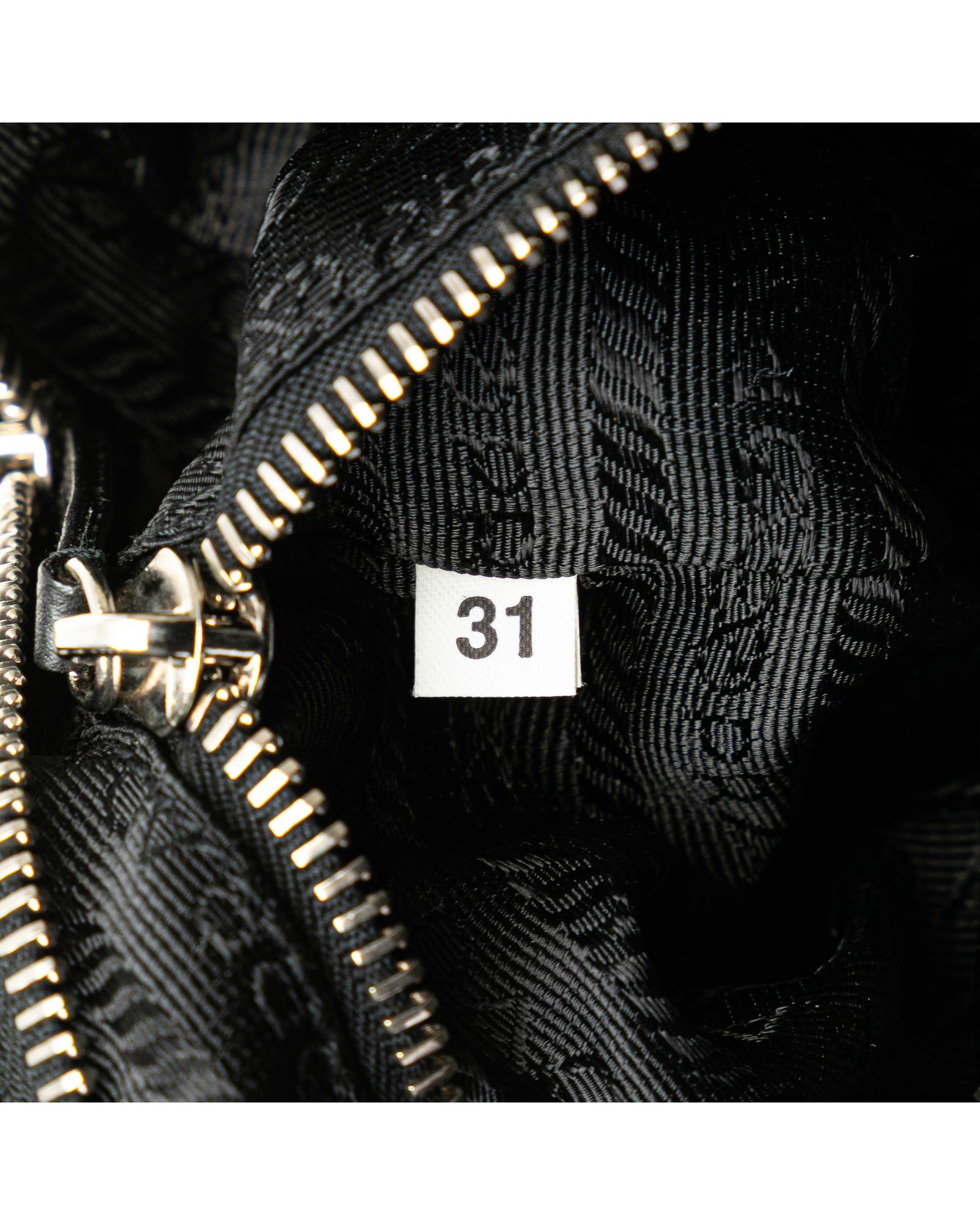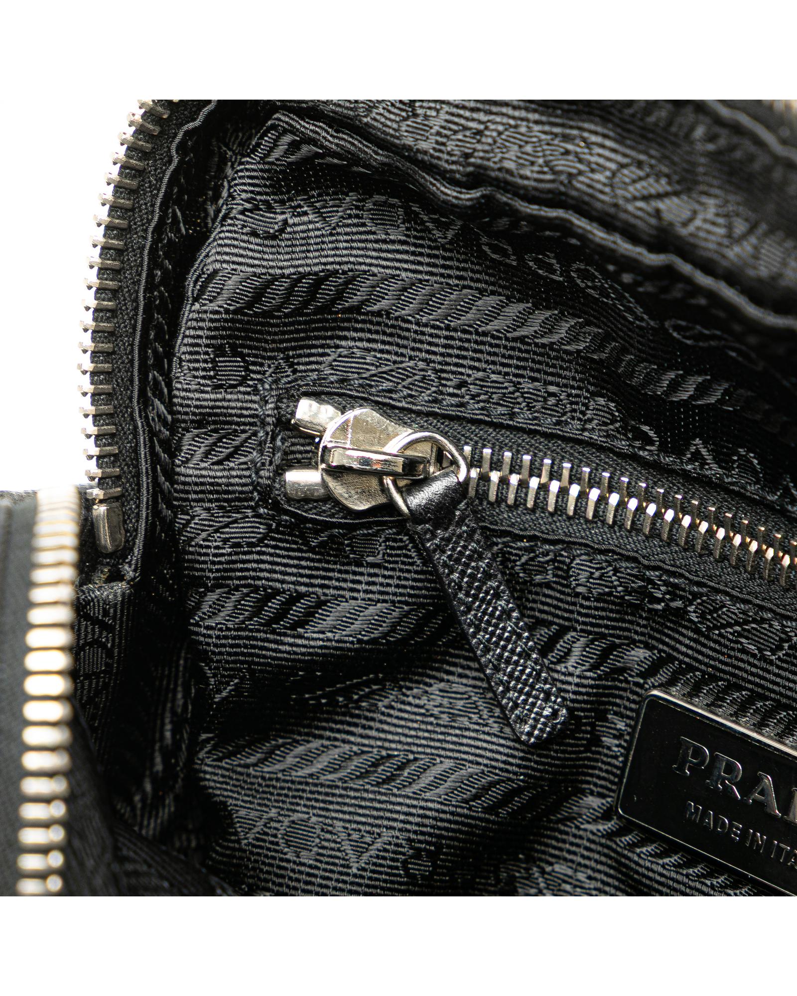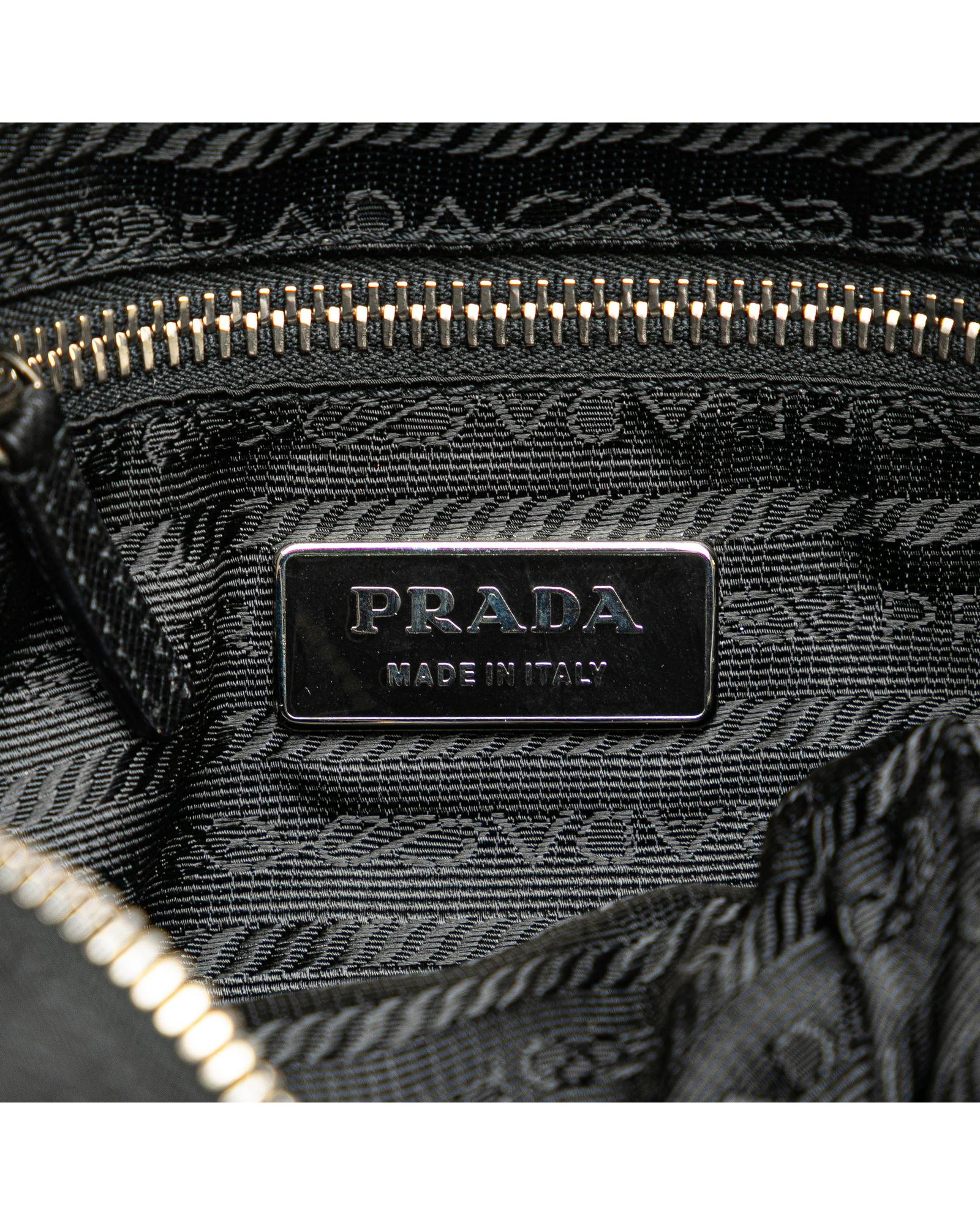 This shoulder bag features a nylon body with saffiano leather trim an adjustable flat leather strap a top zip closure exterior front zip pockets and an interior zip pocket.Brand: Prada