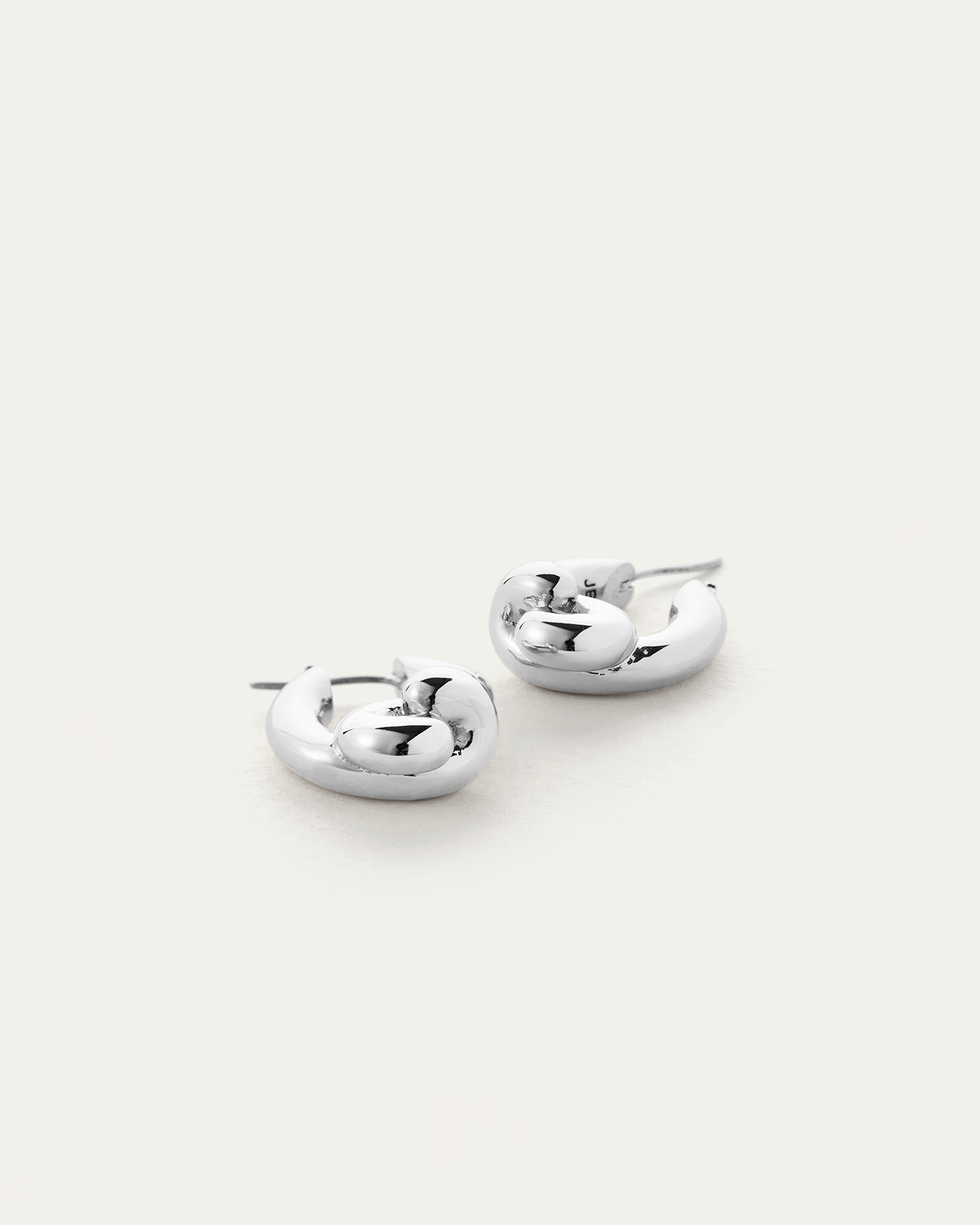 An elevated knot anchors these small tubular hoops. They open and close with a hinge, so you’ll never have to search for an earring back again. To wear, lift post andGently push into opening. Finished in high-polish silver.