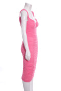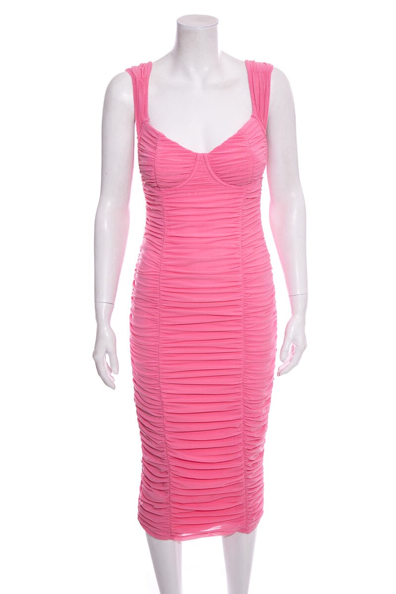 Majorelle Pink Midi Dress With Ruched Detail Throughout. This item is in very good condition.