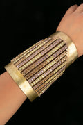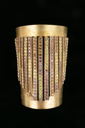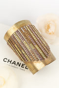 CHANEL -Bracelet manchette en m�tal dor� pav� de strass multicolores.