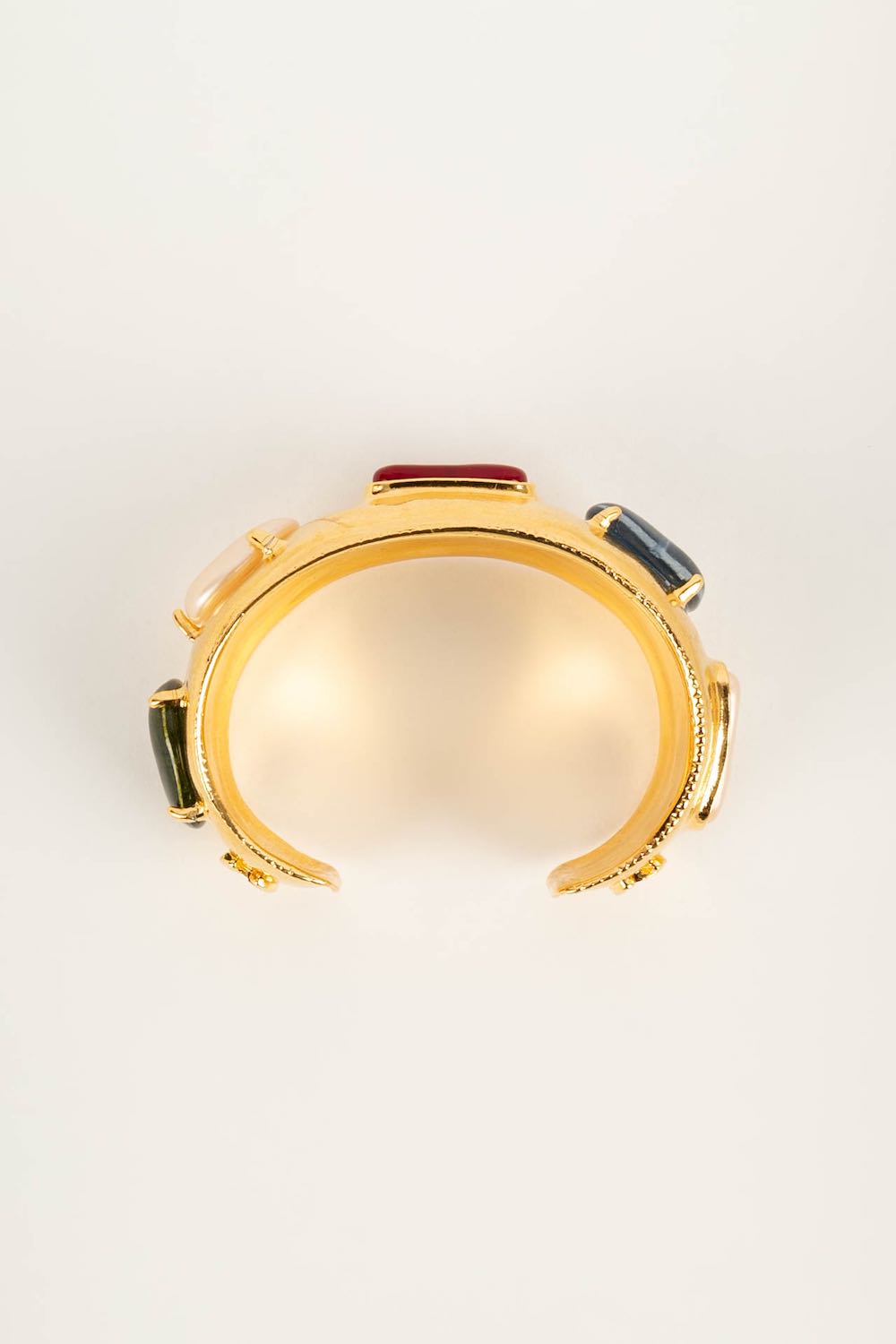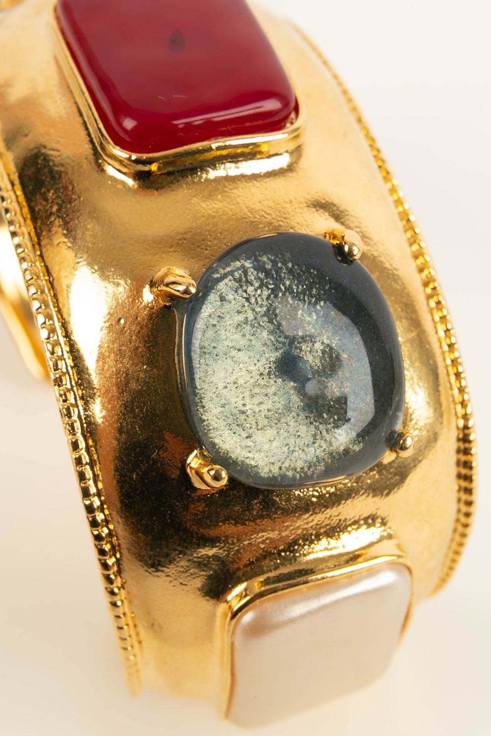 Note: Our Items are totally New High quality Brand Inspired Refurbished. Please make sure you are well aware of it before buying any of the Item. T&C's Apply in case of refunds.Please send us message on below chat to confirm availability. We will send the Refurbished Model in case you place an order with us. Enjoy Shopping.Always Send Us message to confirm availability before buying, In case of refund the transaction fee remains non refundable.�Thank�you. Manchette en m�tal dor� et p�te de verre. Collection Automne/Hiver 1997.
