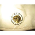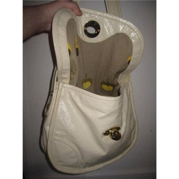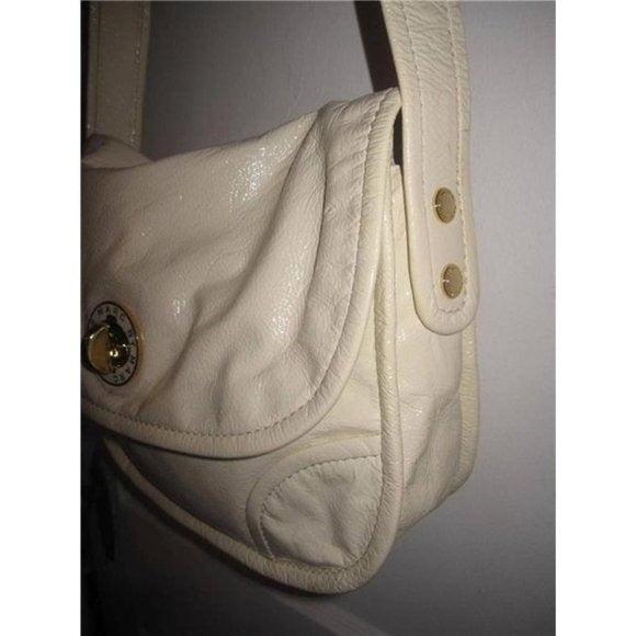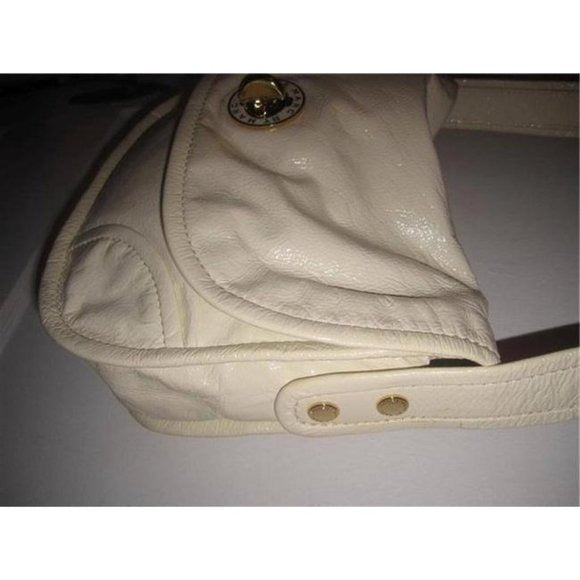 This Marc Jacobs shoulder purse is sure to last you throughout any season, crafted from Ivory Patent leather and boasting a wide strap for ease of use. It features a flap top with a twist close clasp and a slot pocket in the back, allowing for easy access to your belongings and adding an extra layer of security. Its stylish gold tone & enamel accents complete the timeless look. It's an iconic luxury item with a timeless look that can easily go from day to night, making it the perfect choice for anyone looking for an elegant and versatile accessory.