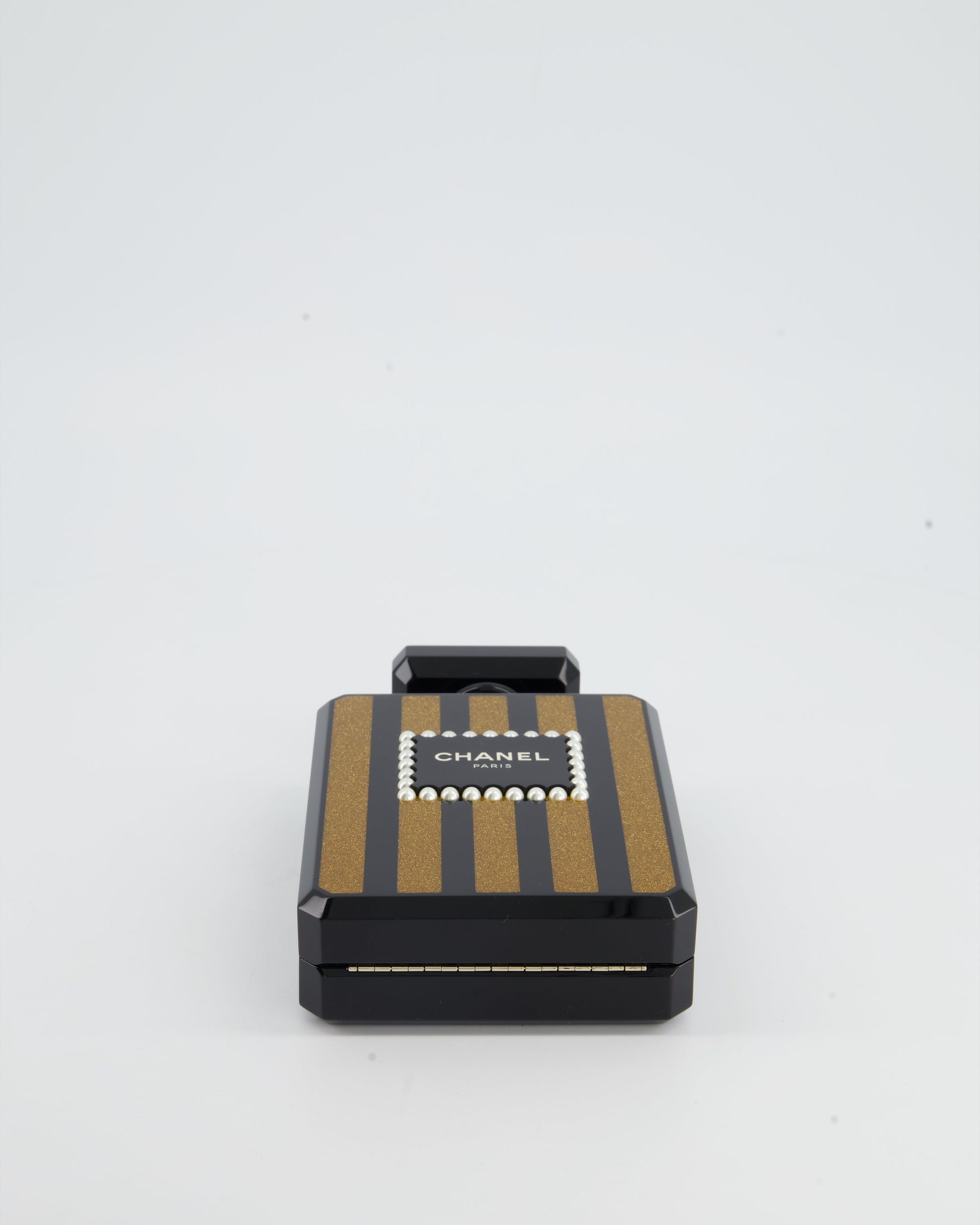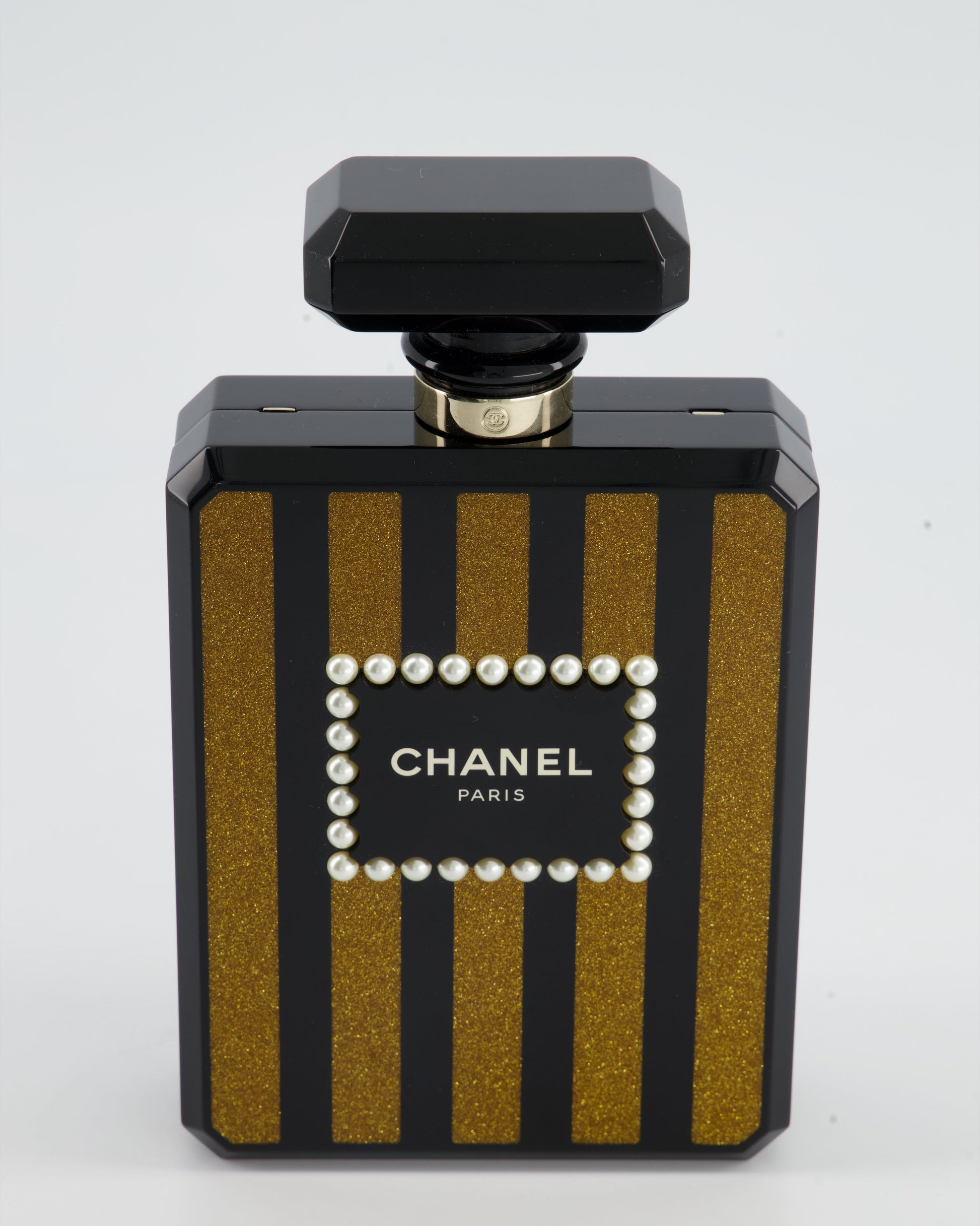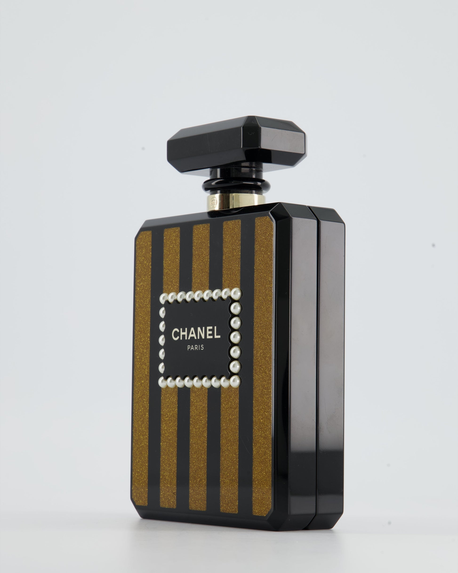 *COLLECTORS* Chanel Black and Glittered Gold Glittered Plexiglass Perfume Bottle with Pearl Detail
