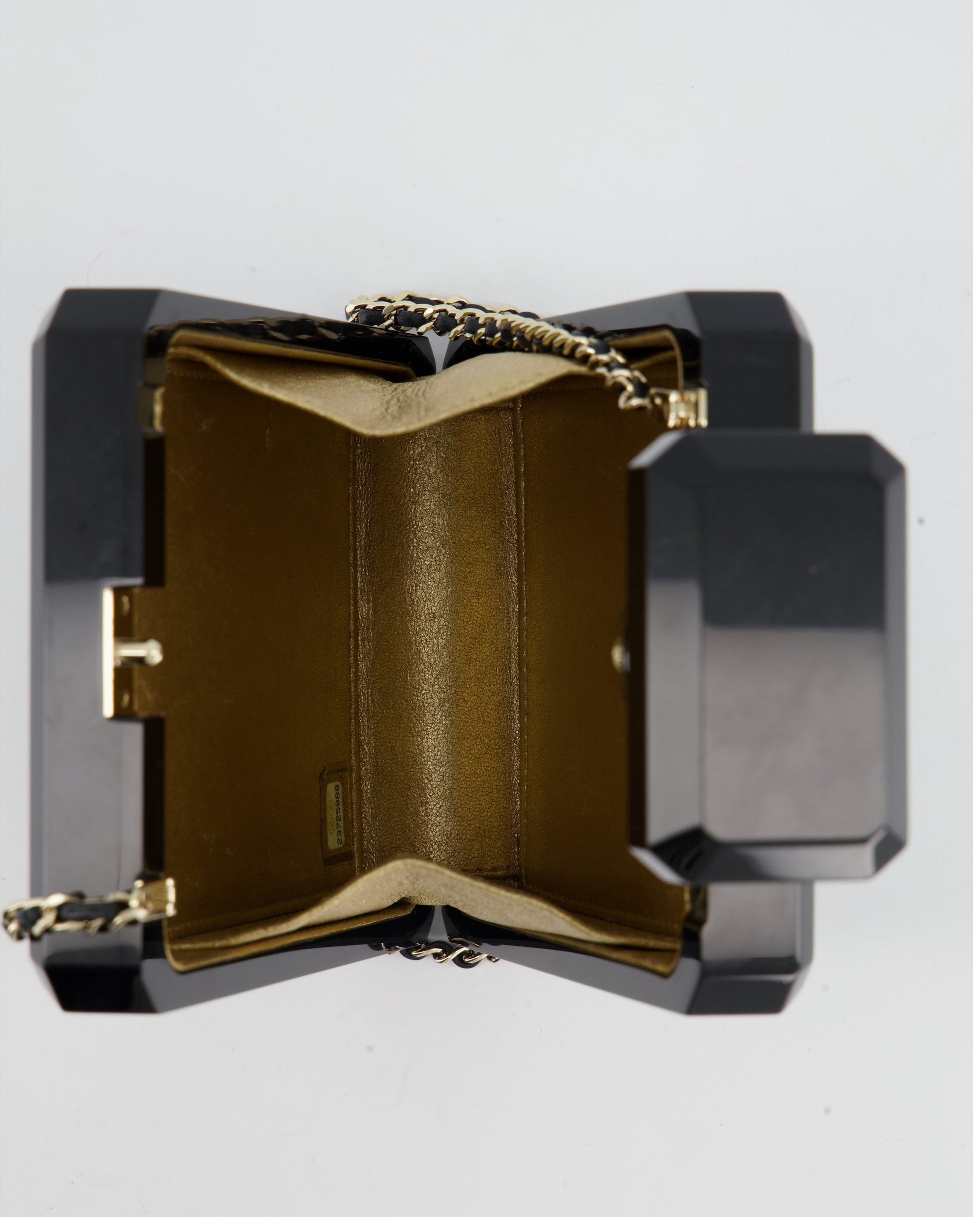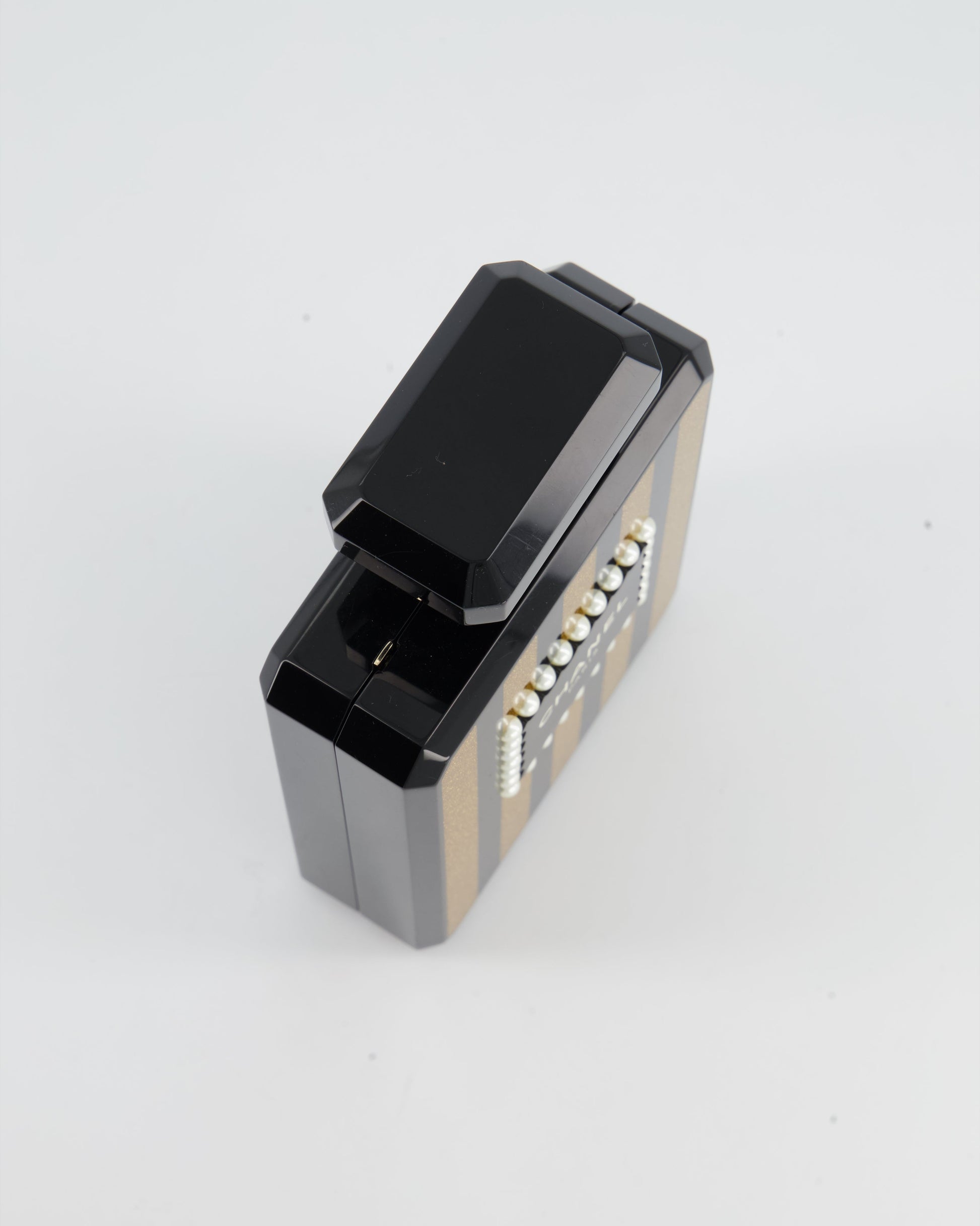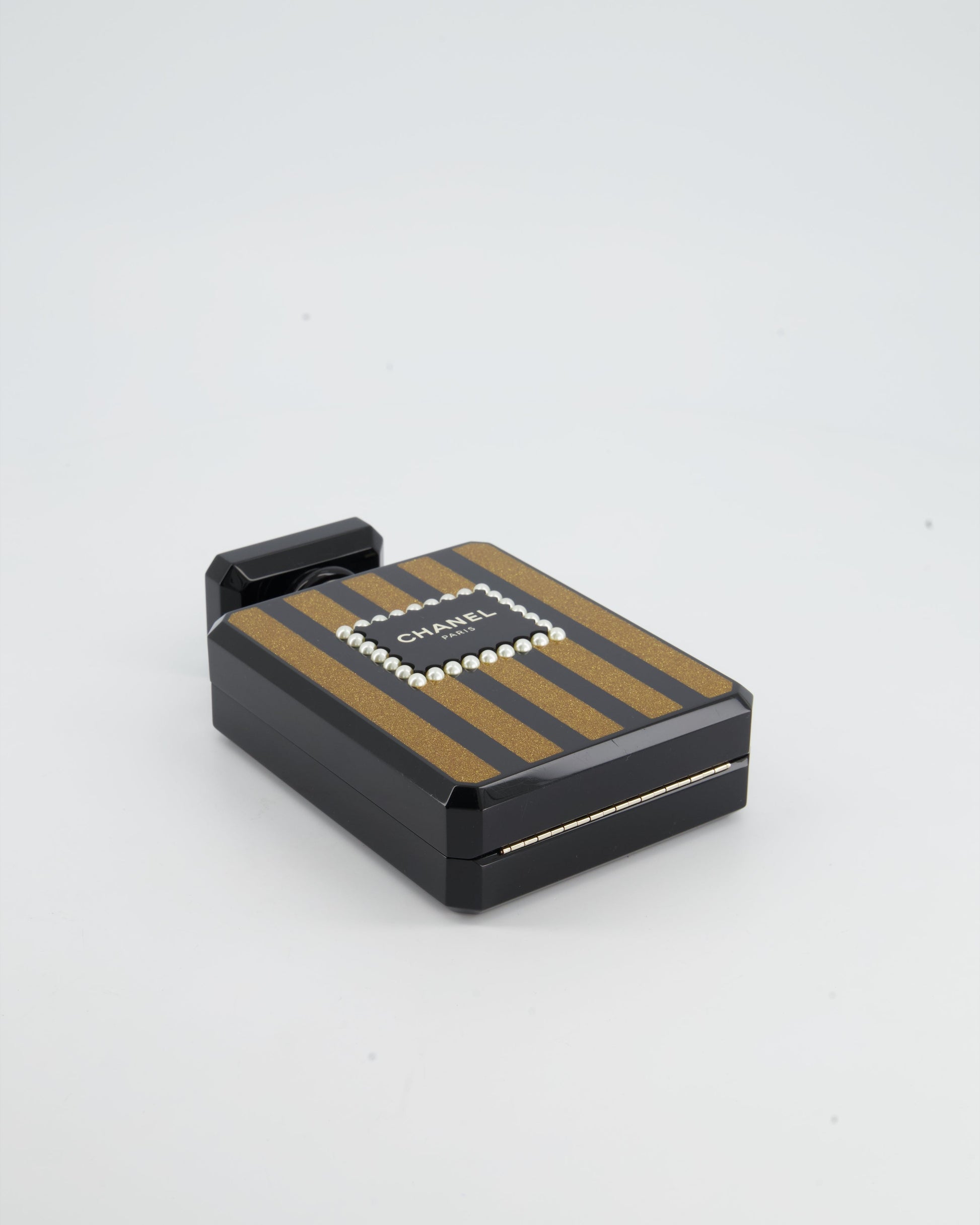 *COLLECTORS* Chanel Black and Glittered Gold Glittered Plexiglass Perfume Bottle with Pearl Detail