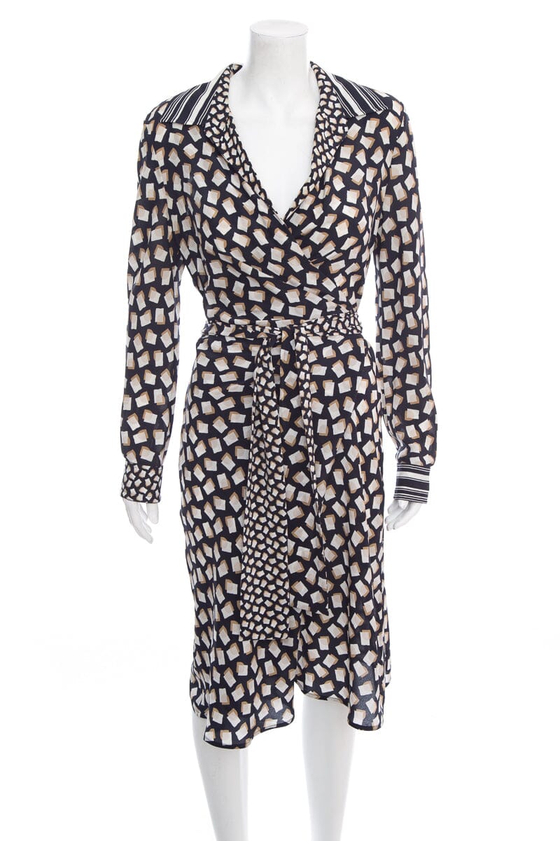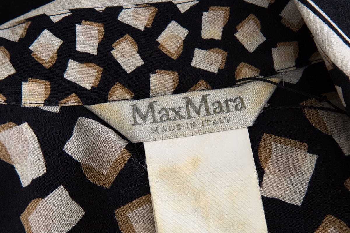 Max Mara Black and Beige Silk Printed Wrap Dress SZ 12