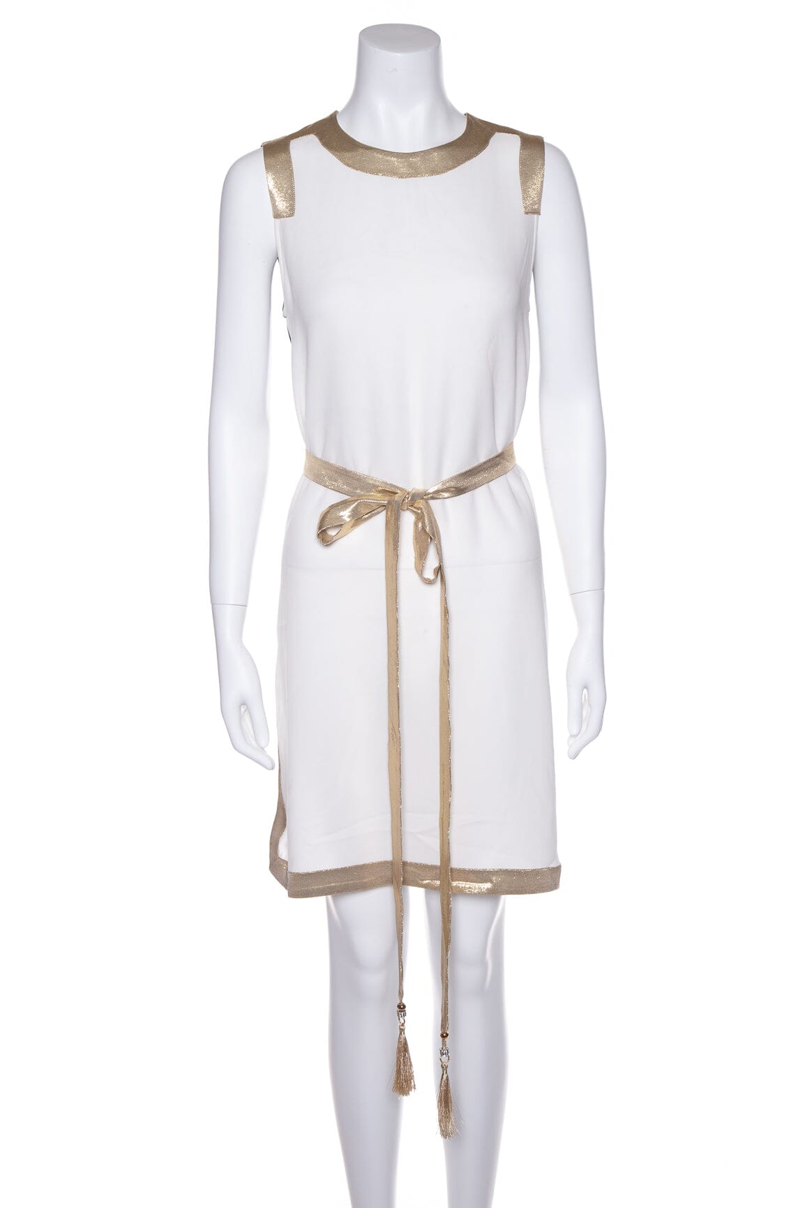 Max Mara White/Gold Sleeveless Dress with Belt. This item is new with tags.
