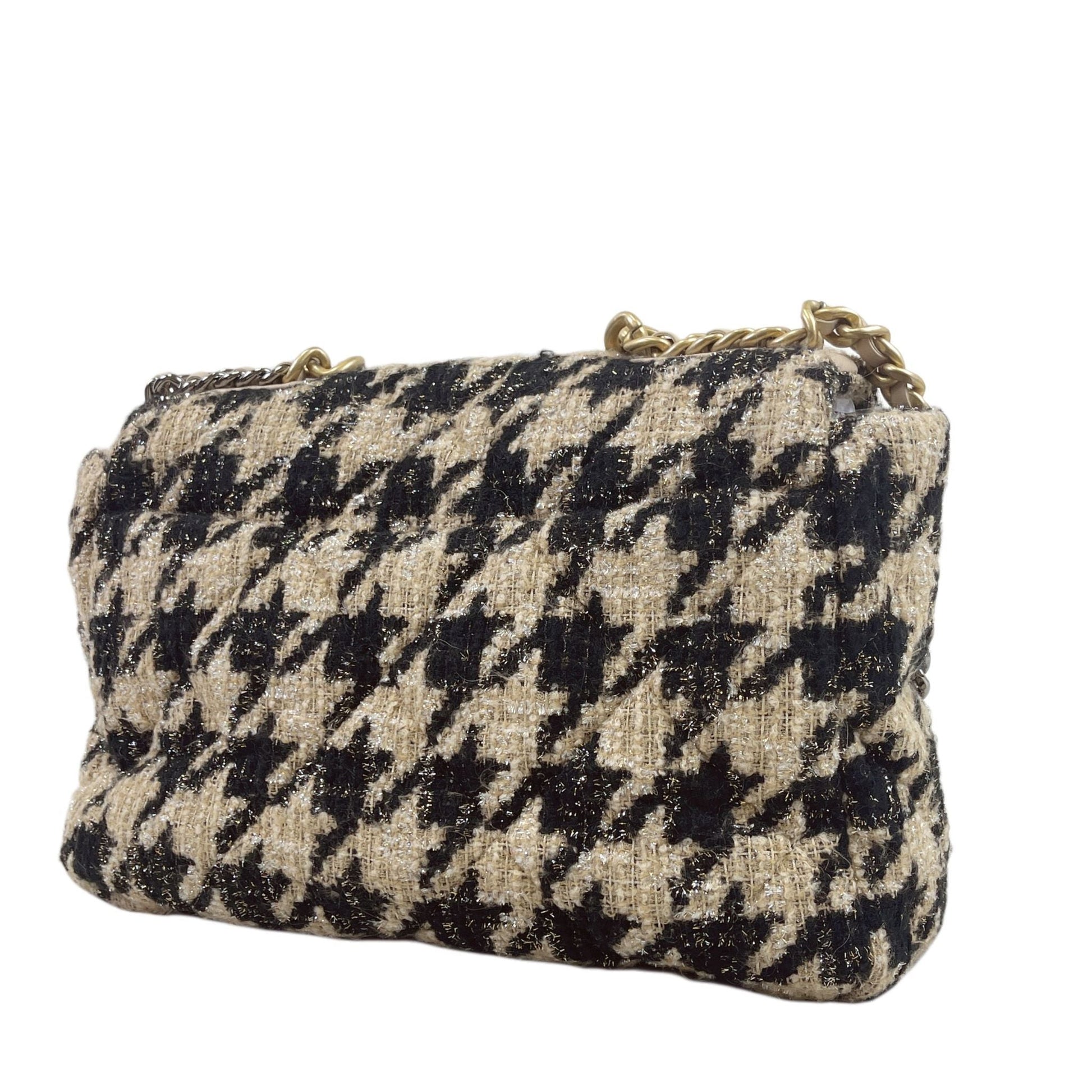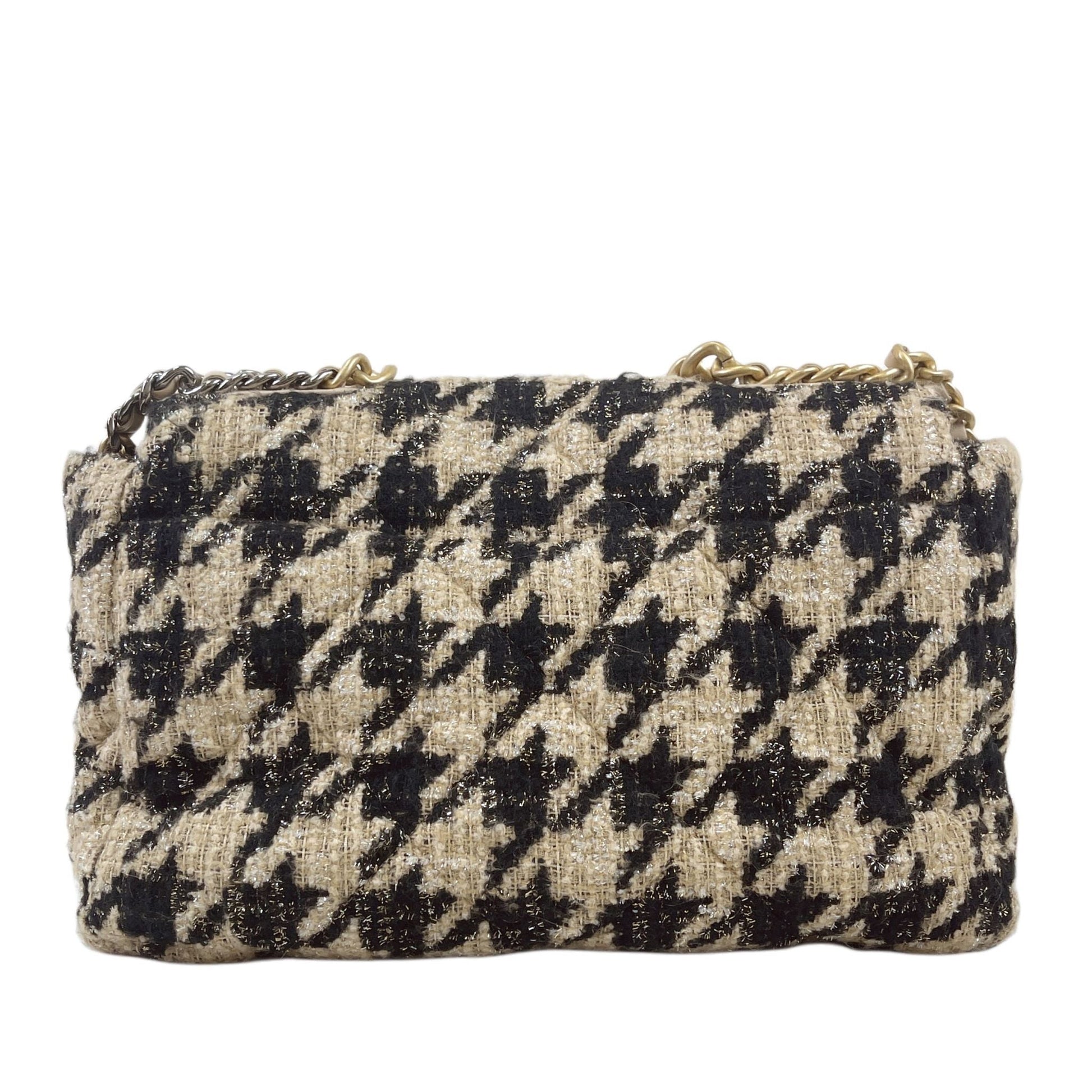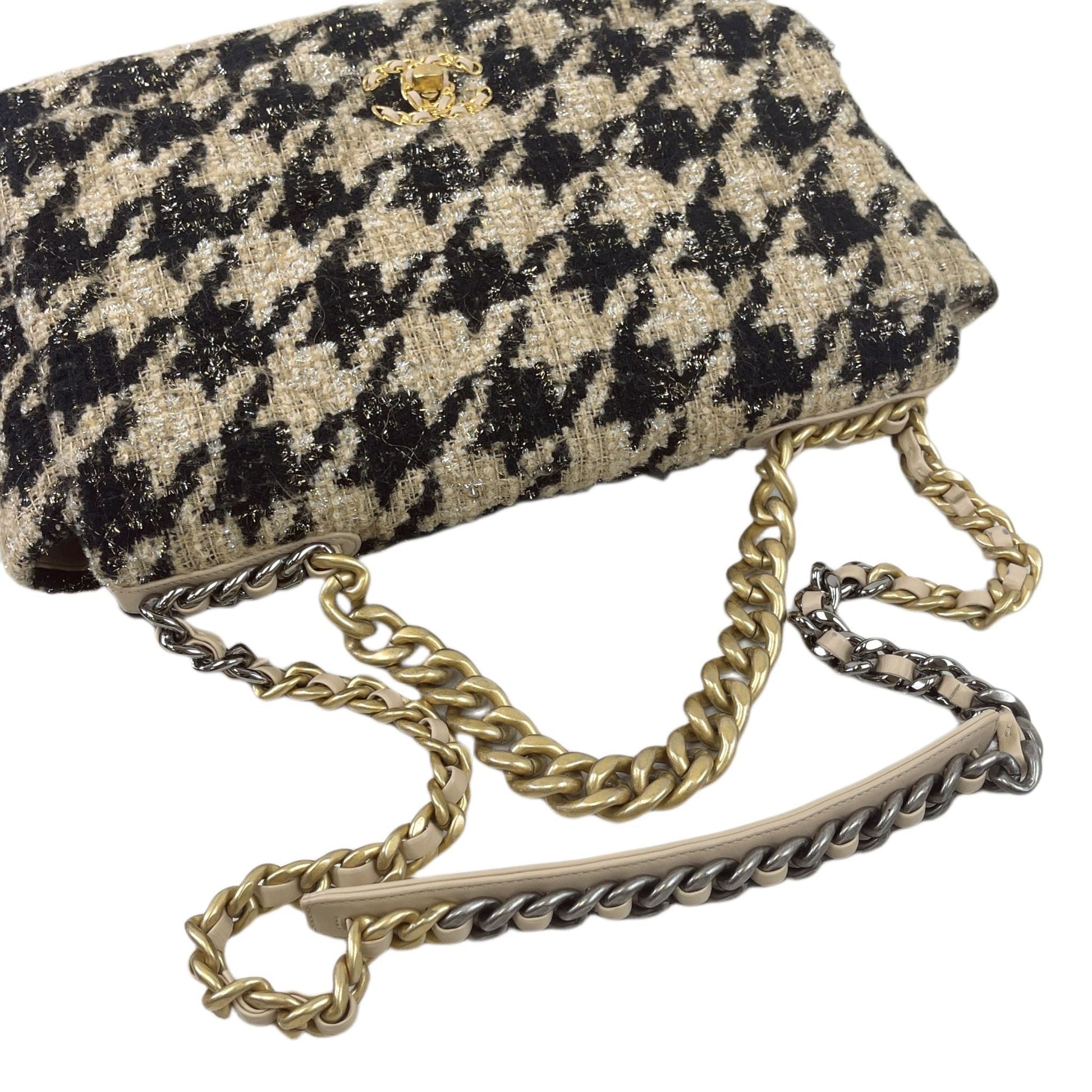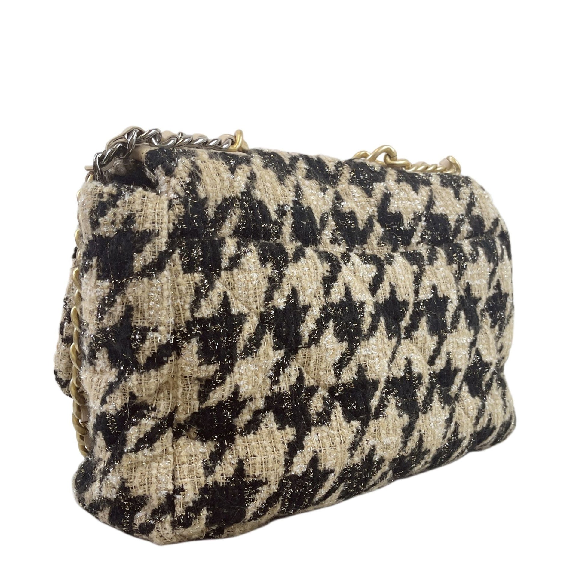 Maxi Chanel 19 Houndstooth Tweed 19K Beige Black