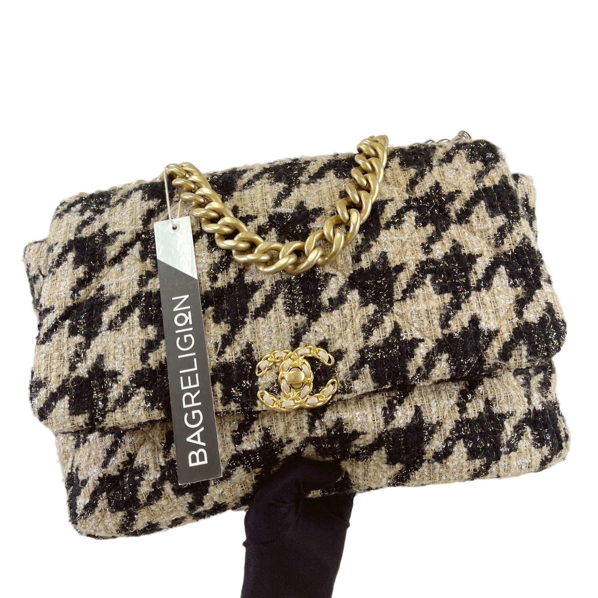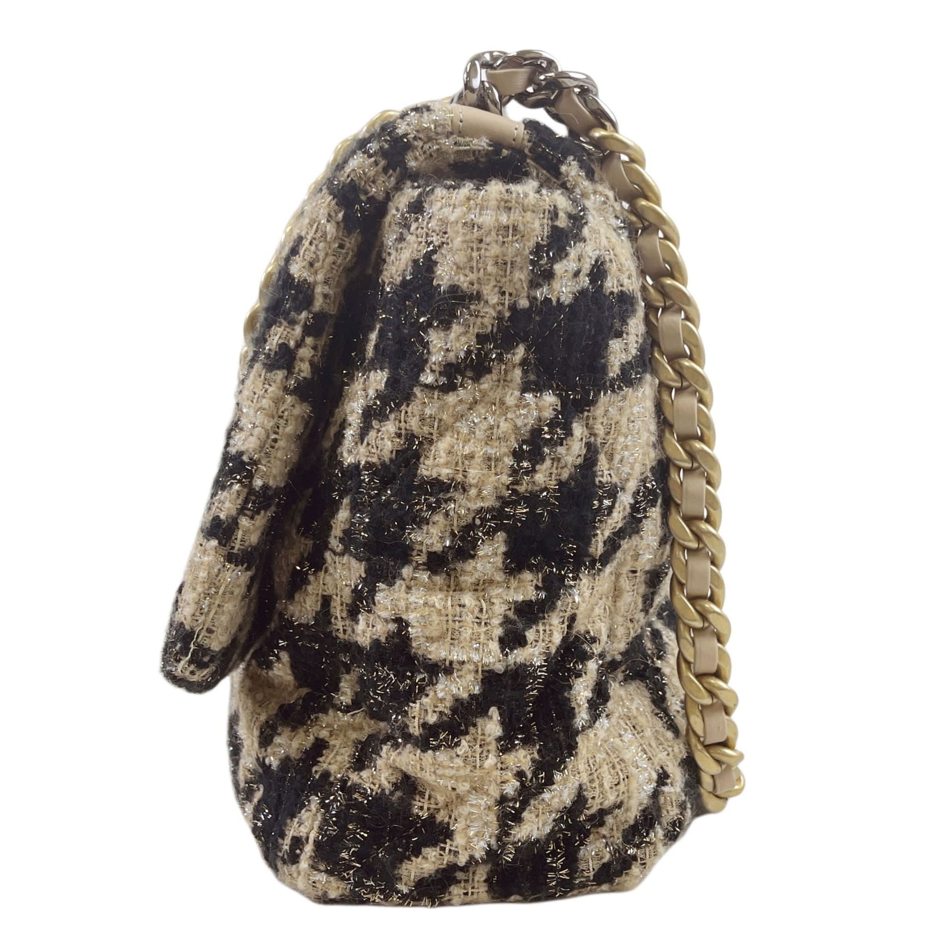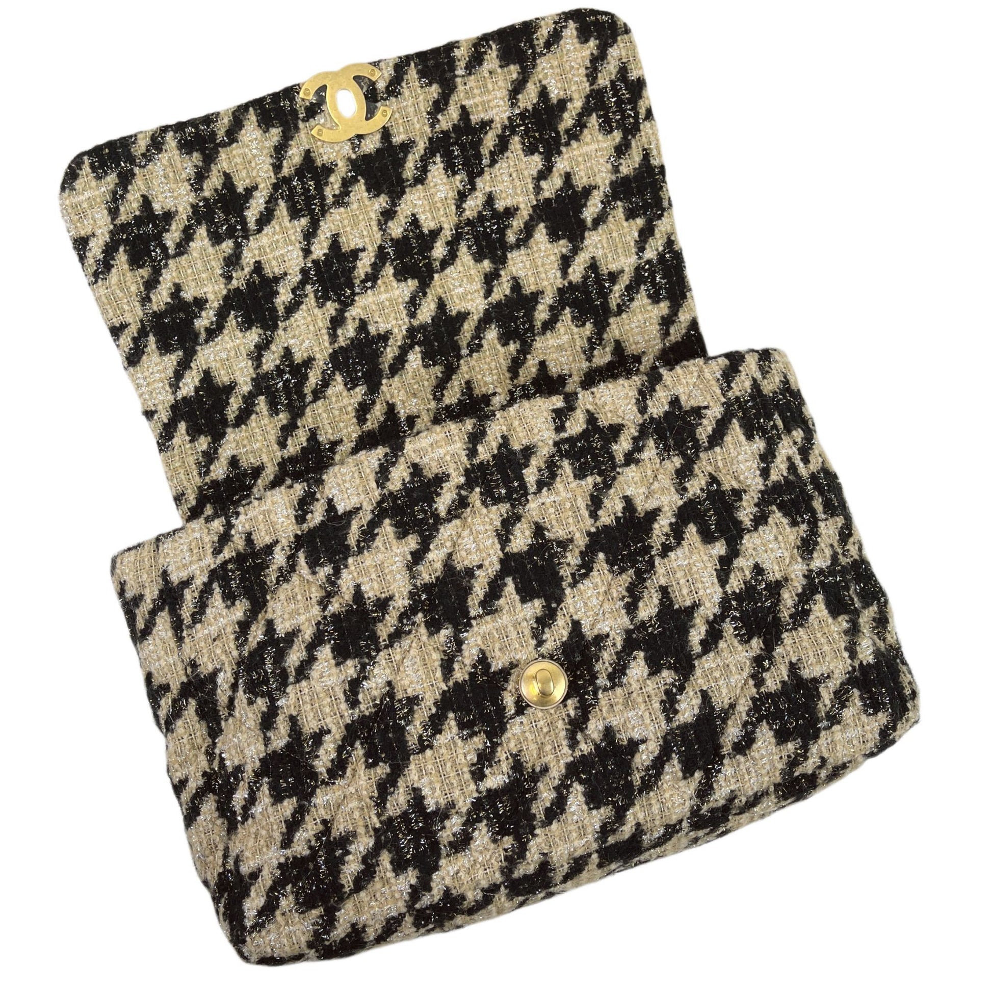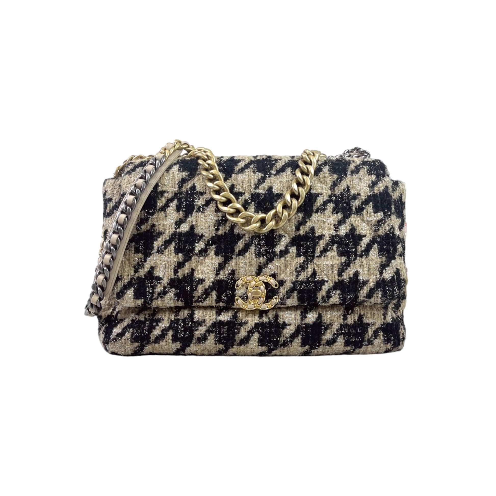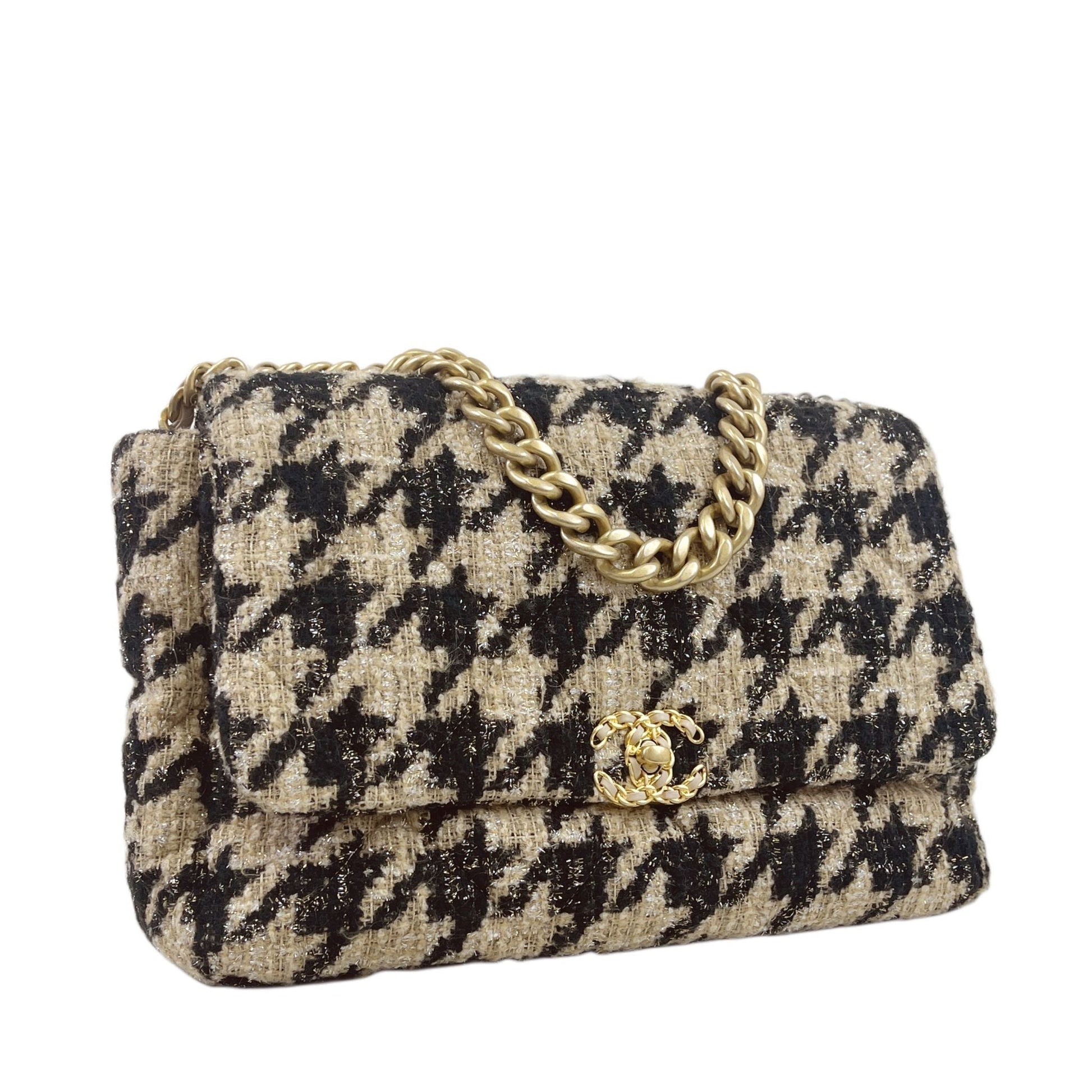 Maxi Chanel 19 Houndstooth Tweed 19K Beige Black