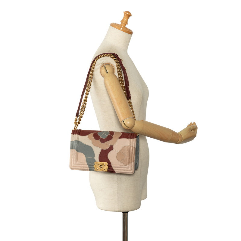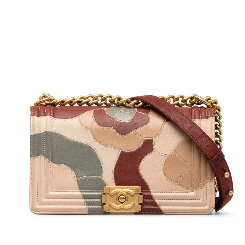 Chanel Medium Camellia Patchwork Le Boy Flap Bag Leather Shoulder Bag in Good condition
