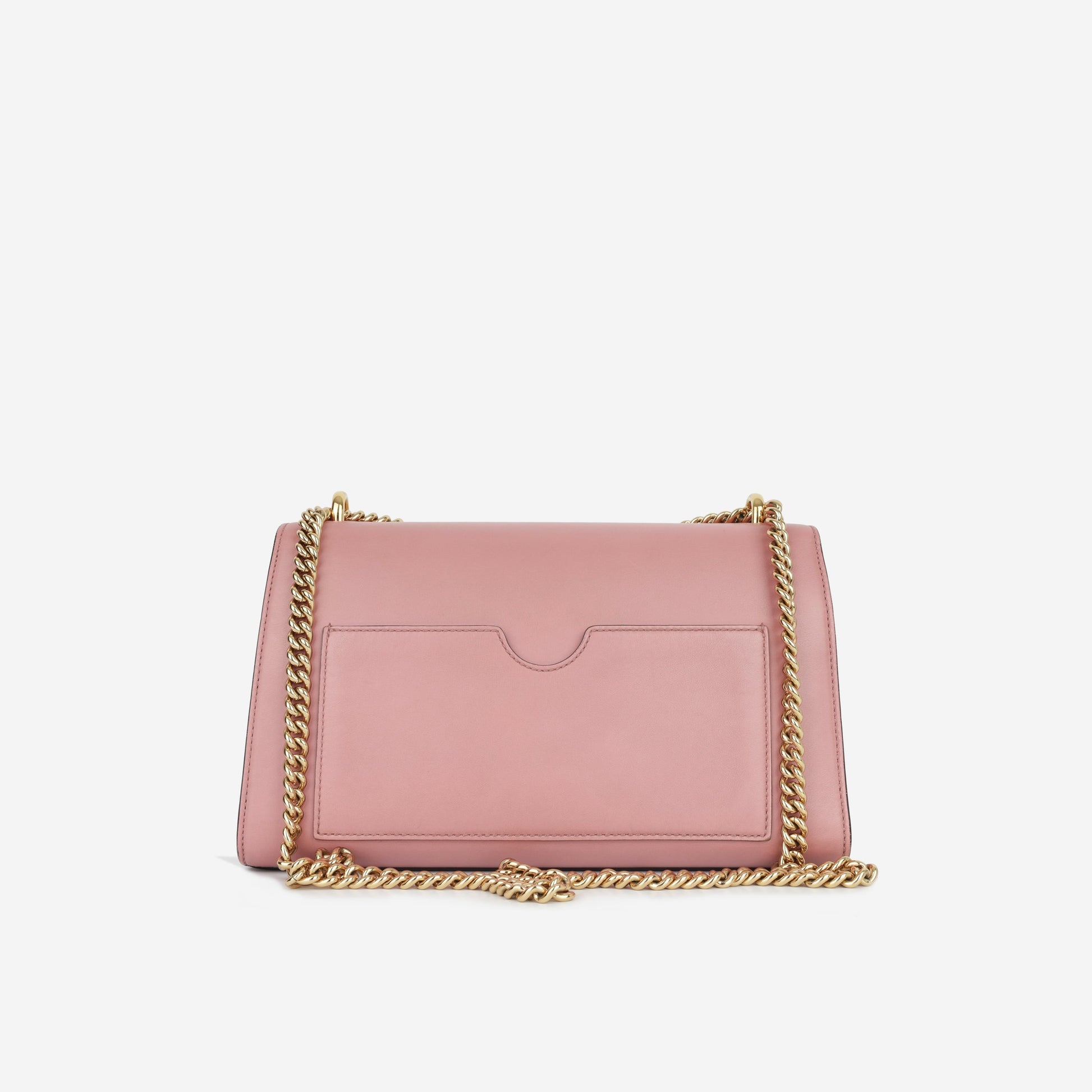 A structured shoulder bag with a key lock closure inspired by Gucci's archives. Recognised for its discreet elegance, this classic style is perfect for the woman who appreciates understated glamour. Crafted from smooth pink calfskin leather adorned with gold-tone hardware. Elevate your look with this iconic padlock bag accessory that seamlessly transitions from day to night.