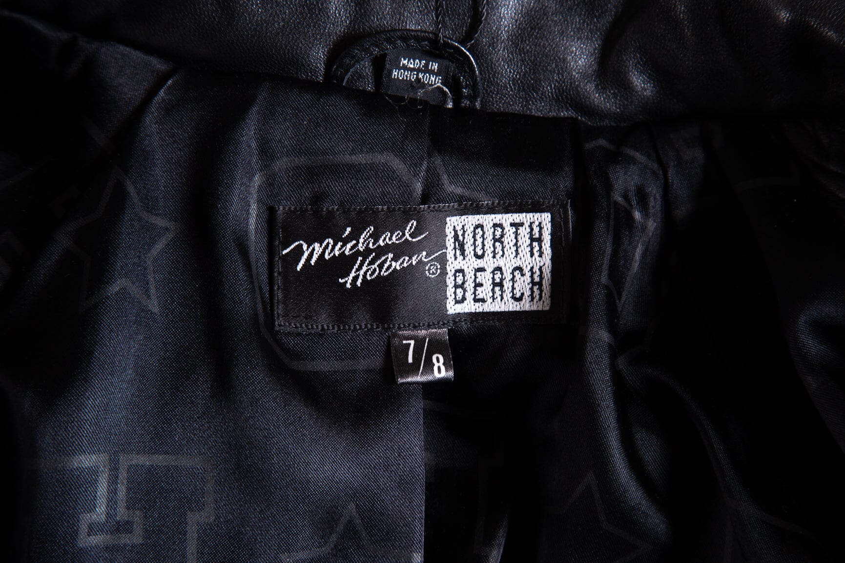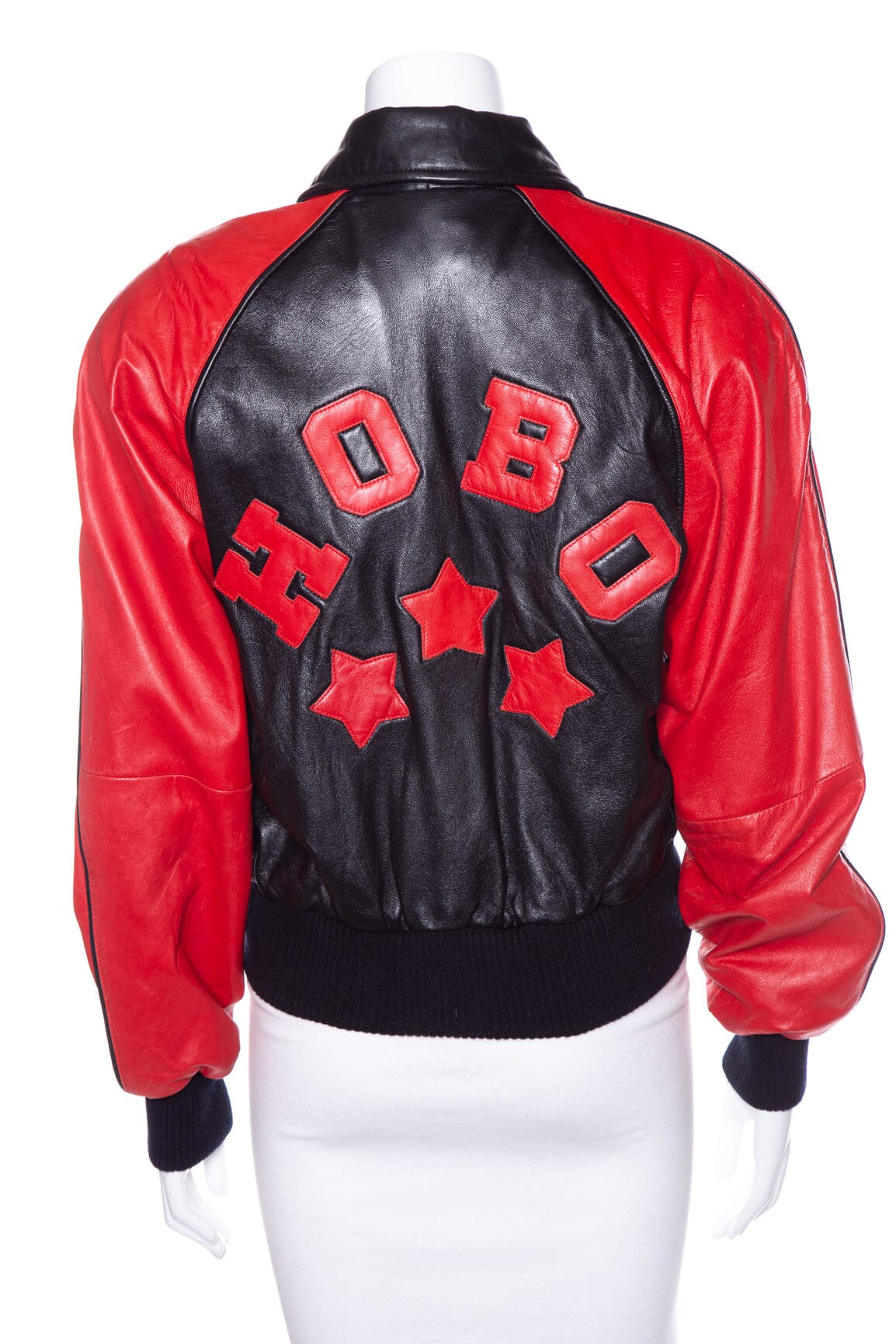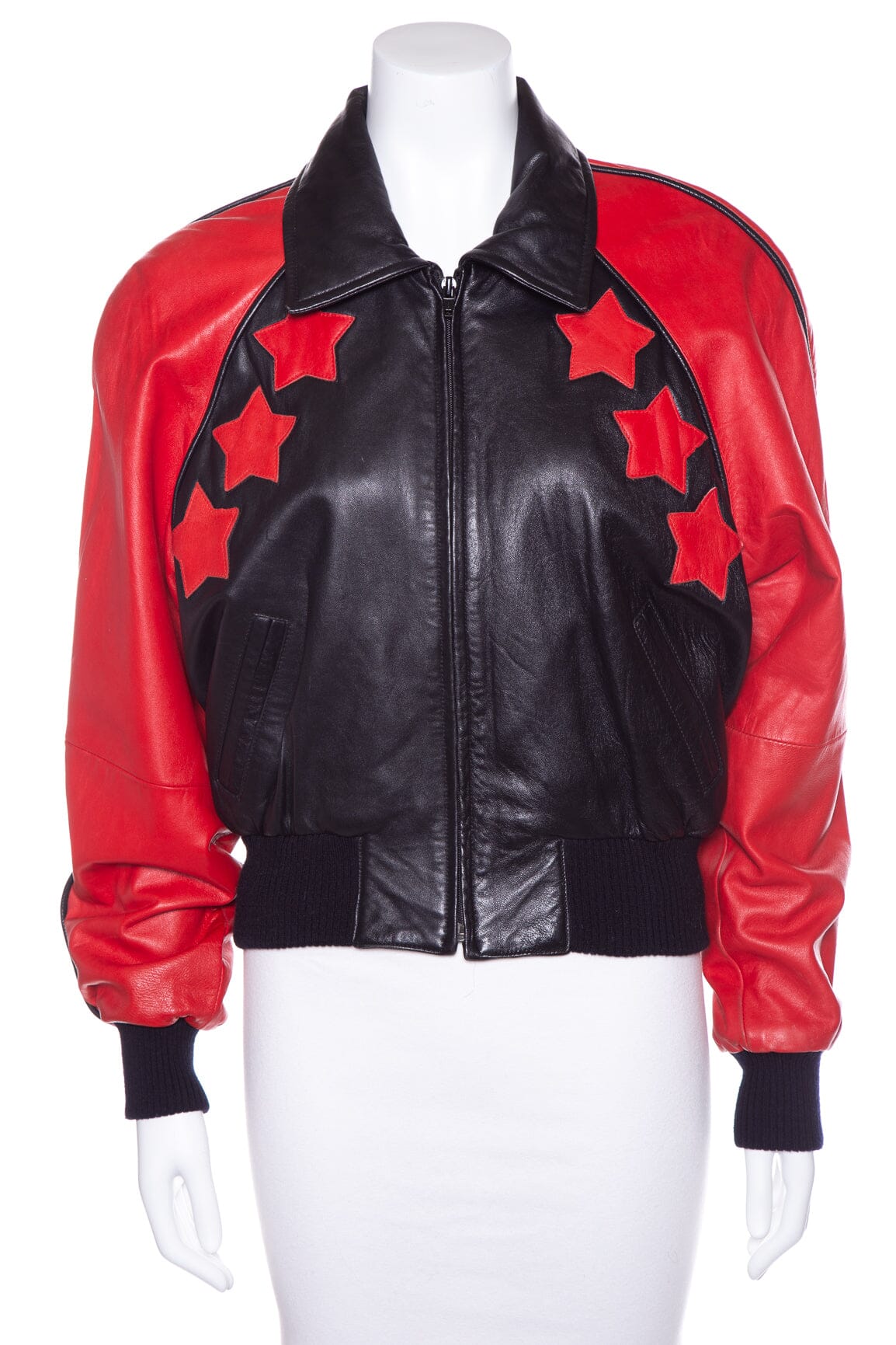 Michael Hoban Red/Black Leather Star Bomber Jacket. This item is vintage and in good condition.