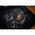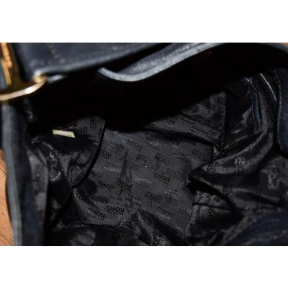 This will be the only black purse you will need! It is made with supple, pebbled black leather with a cool, chic look with gold toned hardware and enough storage for all your daily needs. There is a small pouch pocket on the front face that opens with an MK rounded 'push-lock'.