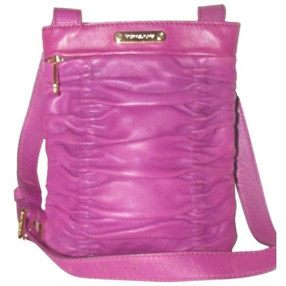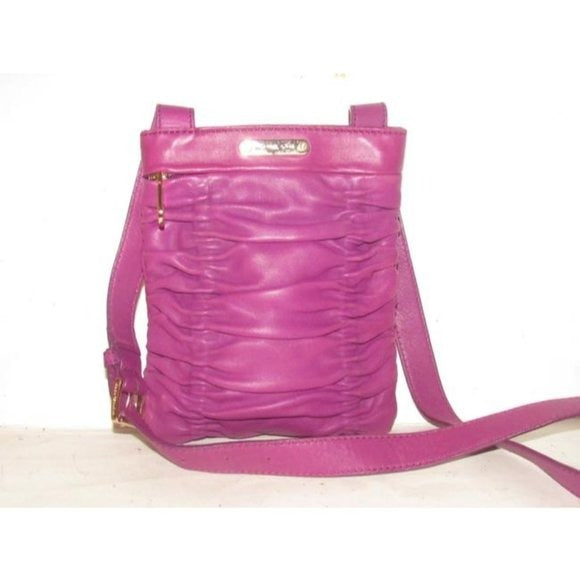 This is a perfect petite yet roomy cross body style be Michael Kors in a great plum color! It is made with supple, ruched, rich plum leather with a cool, chic look with bold, gold toned hardware and enough storage for all your daily needs.