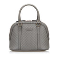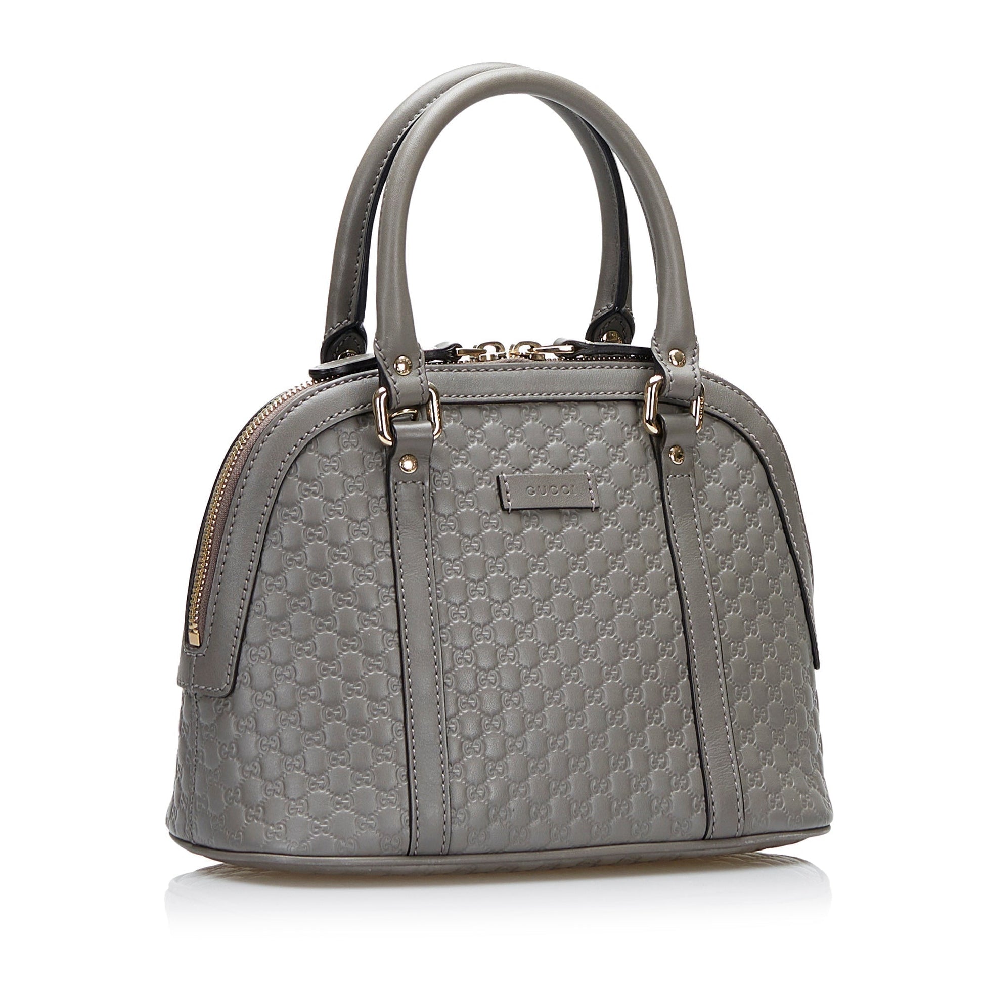The Mini Dome satchel features a leather body, rolled leather handles, a detachable flat strap, a top zip closure, and an interior slip pocket. Comes with dust bag
