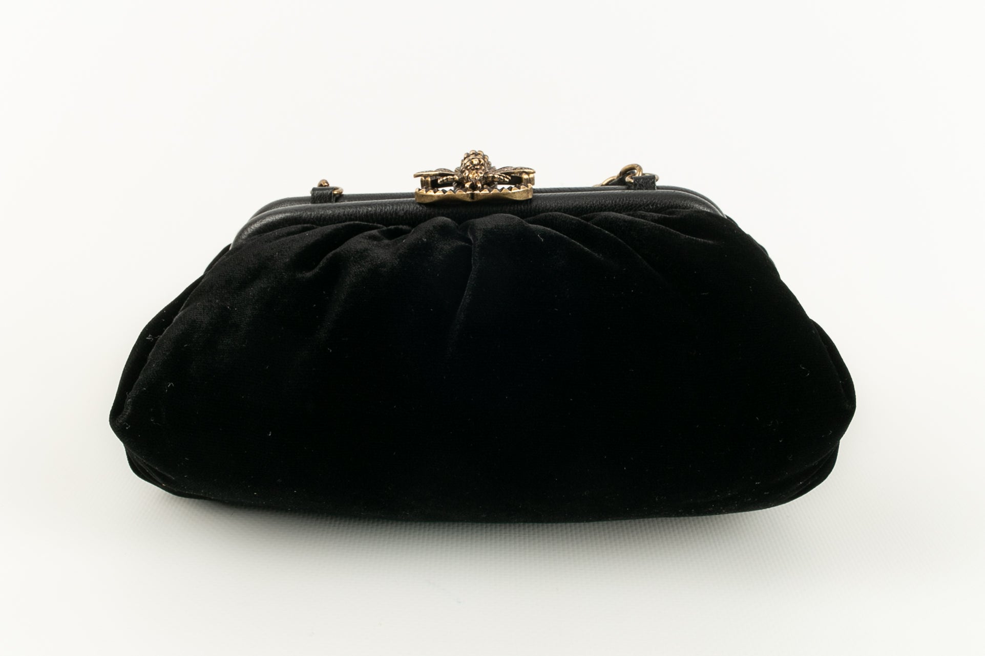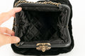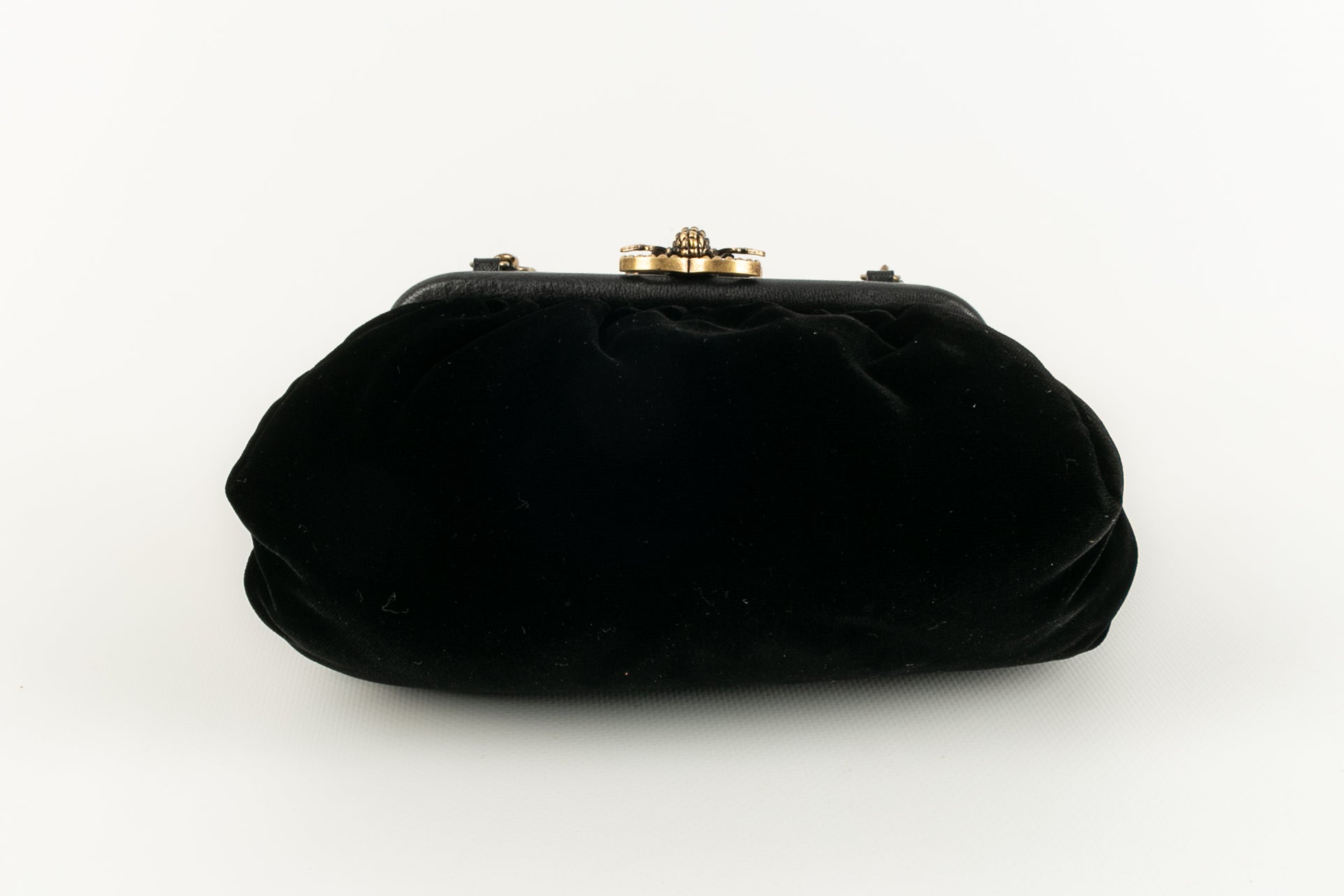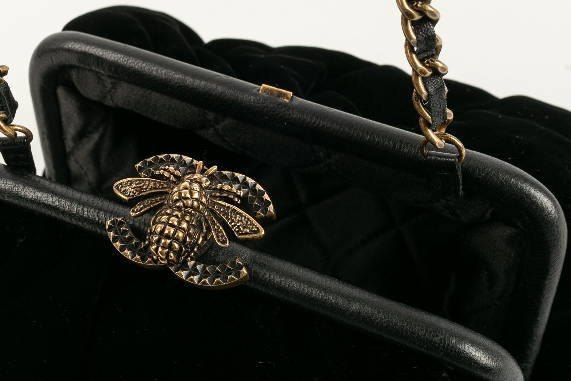 CHANEL -(Made in Italy) Minaudi�re en velours et cuir noir, attributs en m�tal dor� fonc�. Sac issu de ventes priv�es.