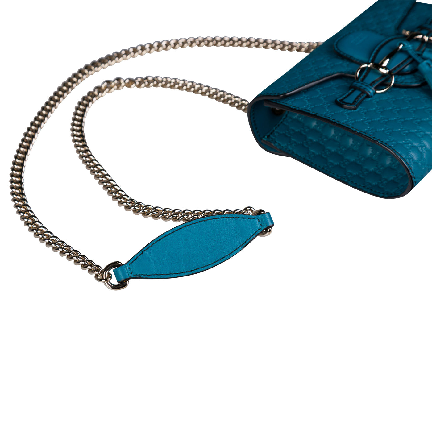 The beautifully constructed Emily Guccissima shoulder bag features a single light gold hardware chain strap that can be on the shoulder, carried as a handheld or across the body.