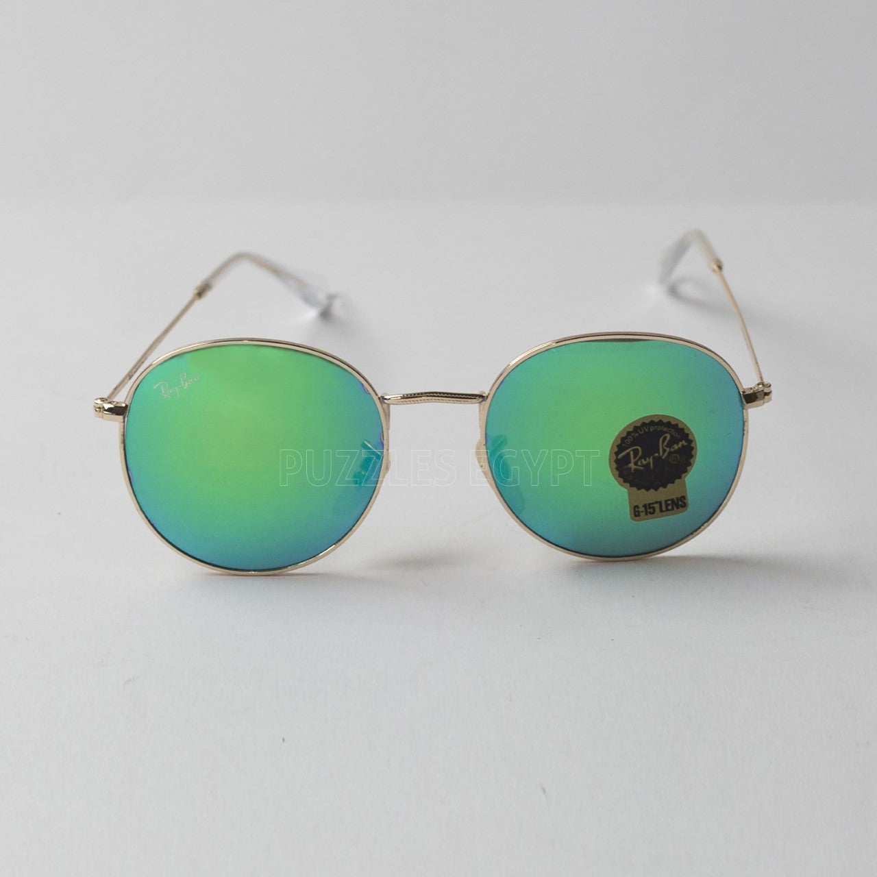 Polarized Round Metal-Frame Sunglasses with Green Mirror Lens