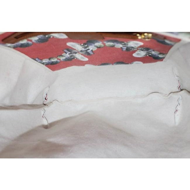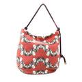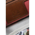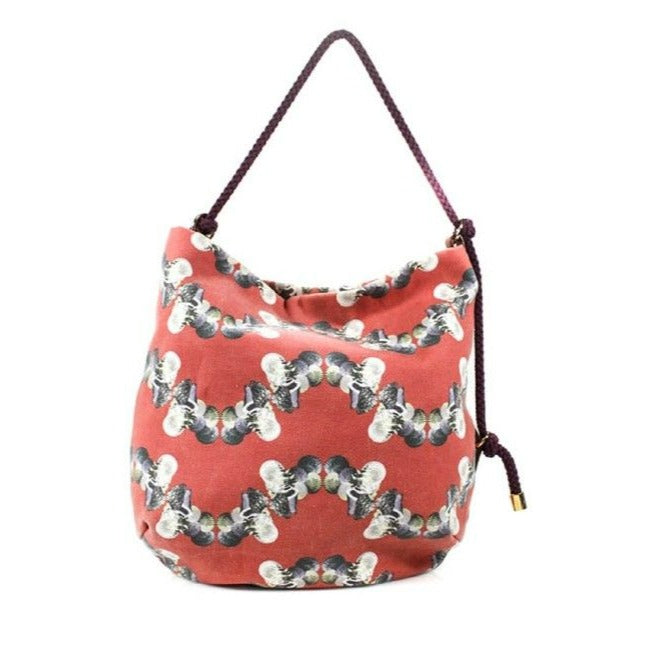Missoni Red Canvas With Blue Grey And White Abstract Shell Print And Brown Leather Bag