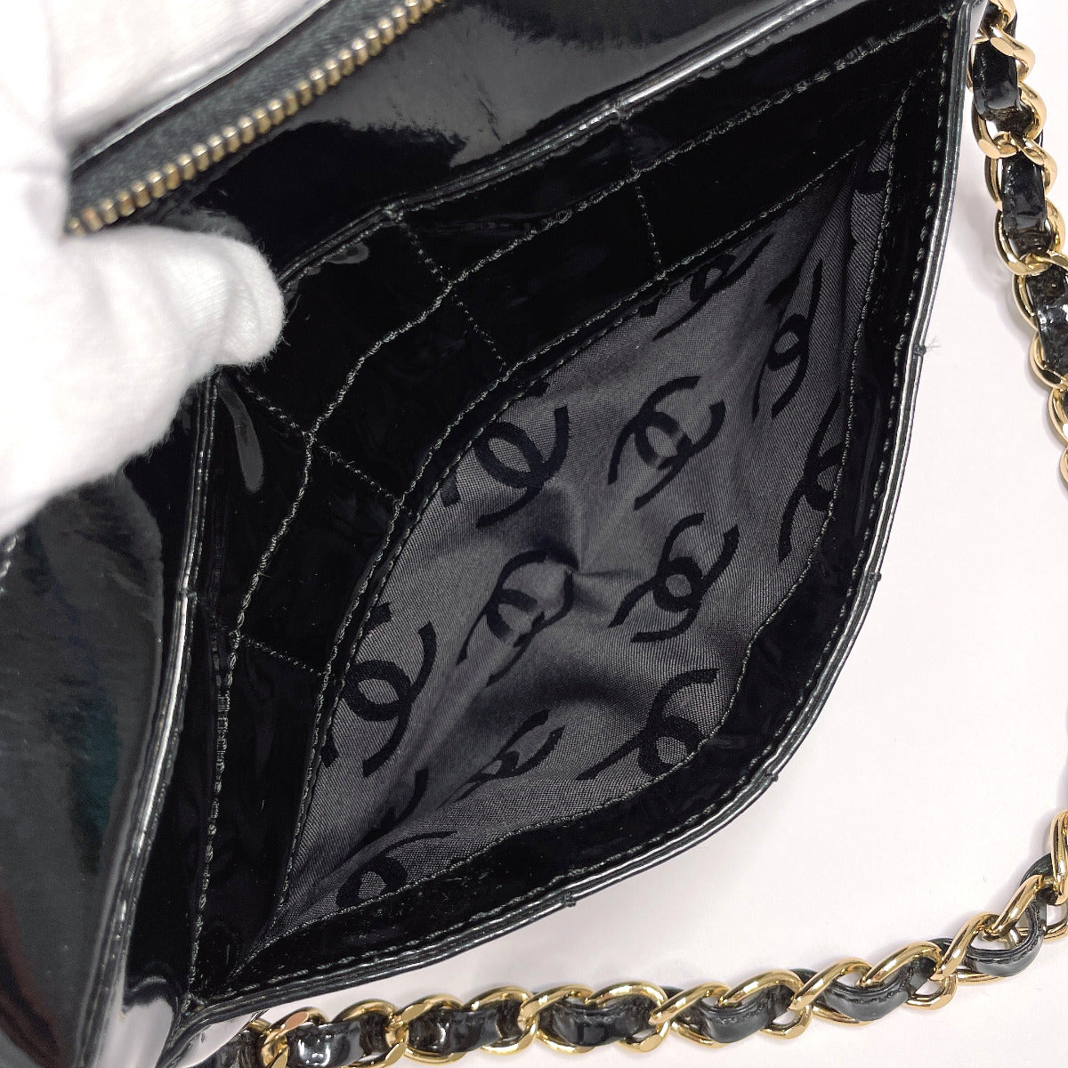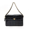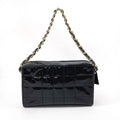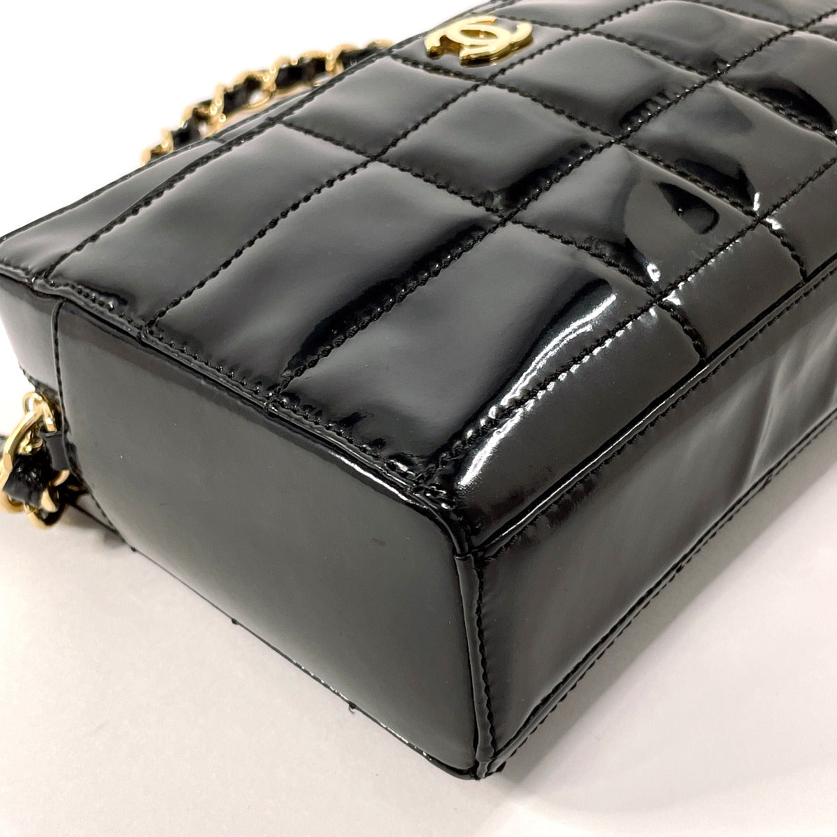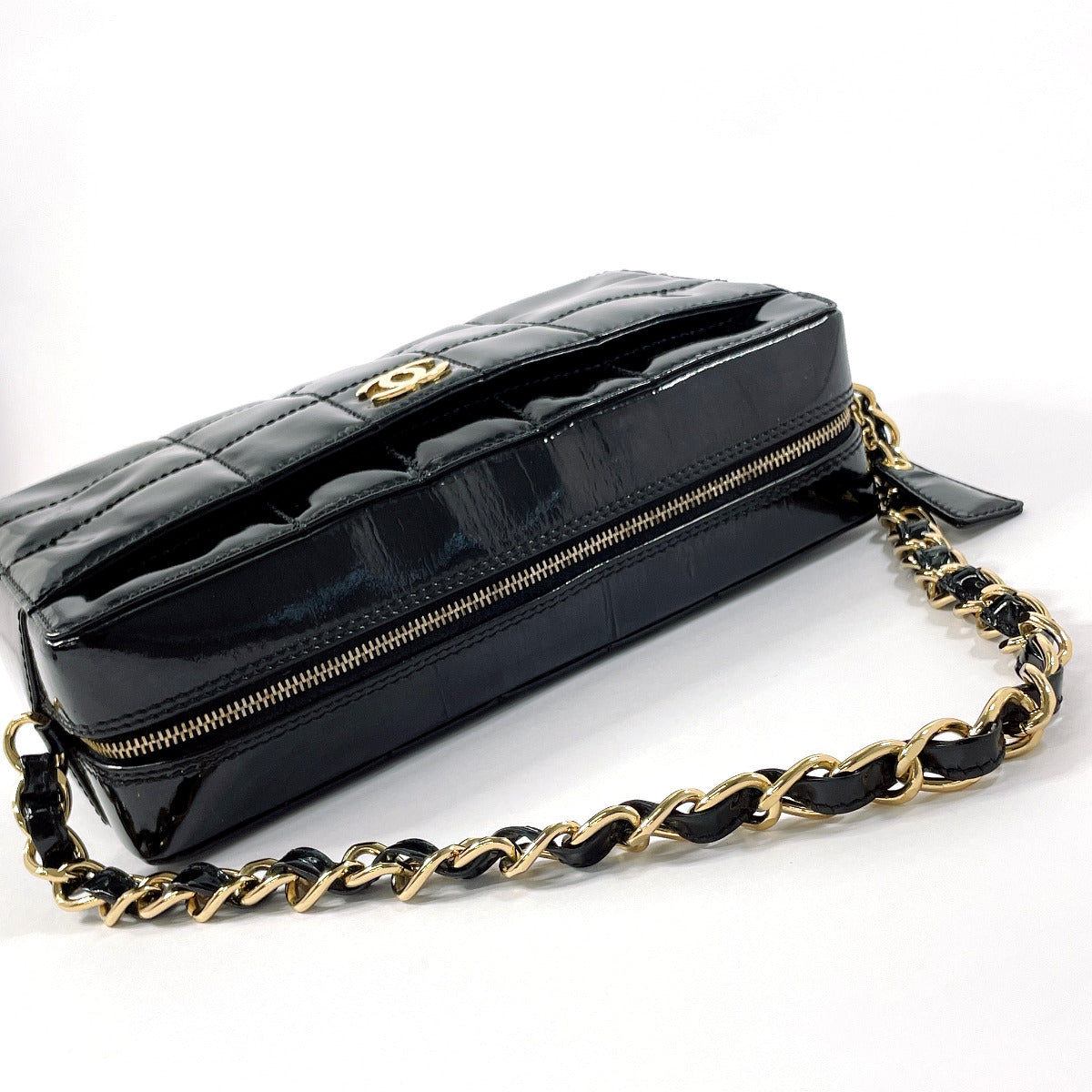 CHANEL Shoulder Bag Patent leather black Chocolate bar ChainShoulder