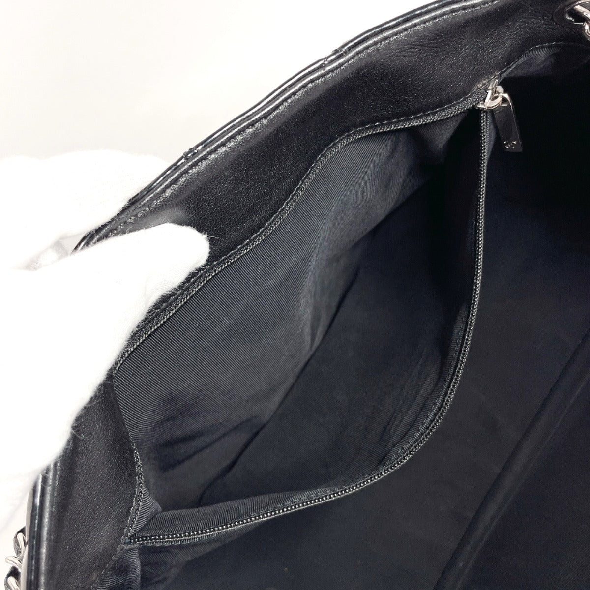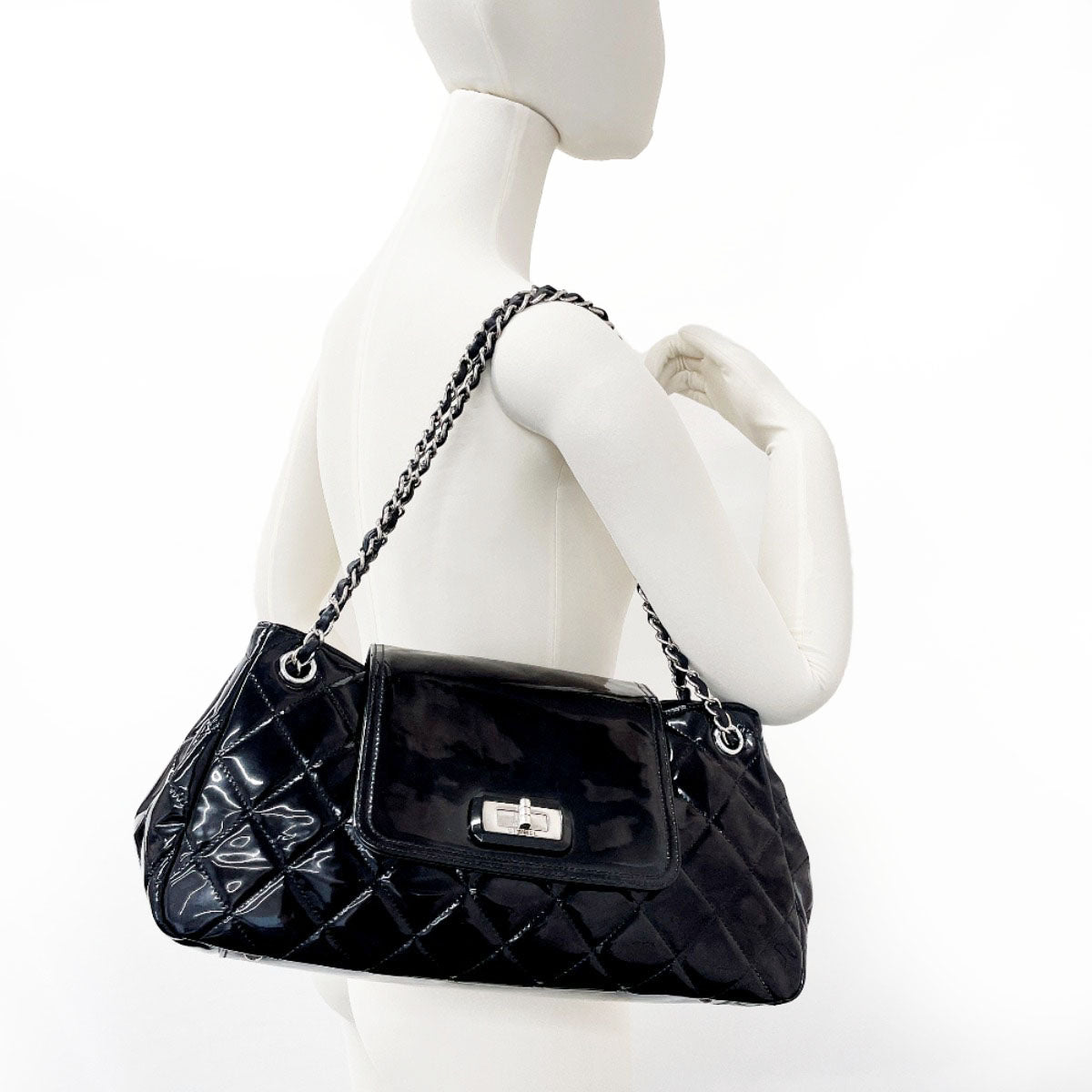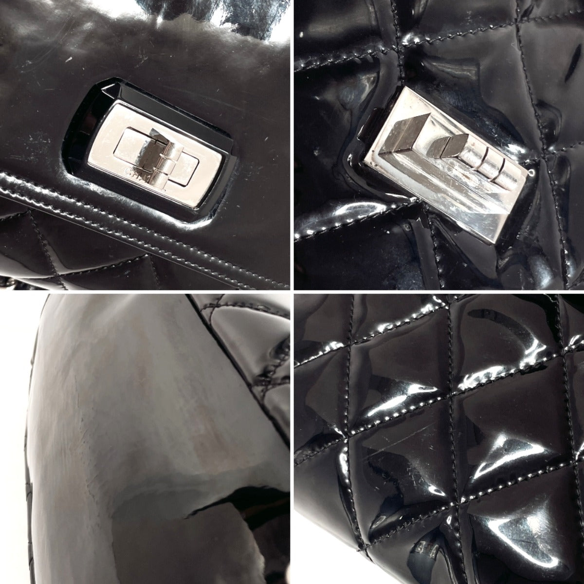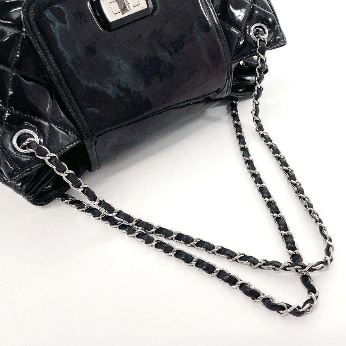 CHANEL Shoulder Bag Patent leather black ChainShoulder Matrasse