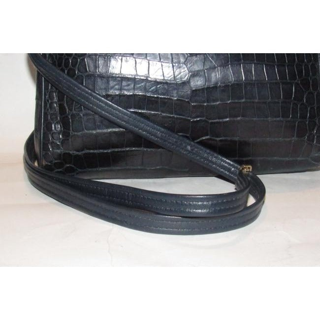 Neiman Marcus Shoulder Purses Navy Blue Crocodile Leather Cross Body Bag