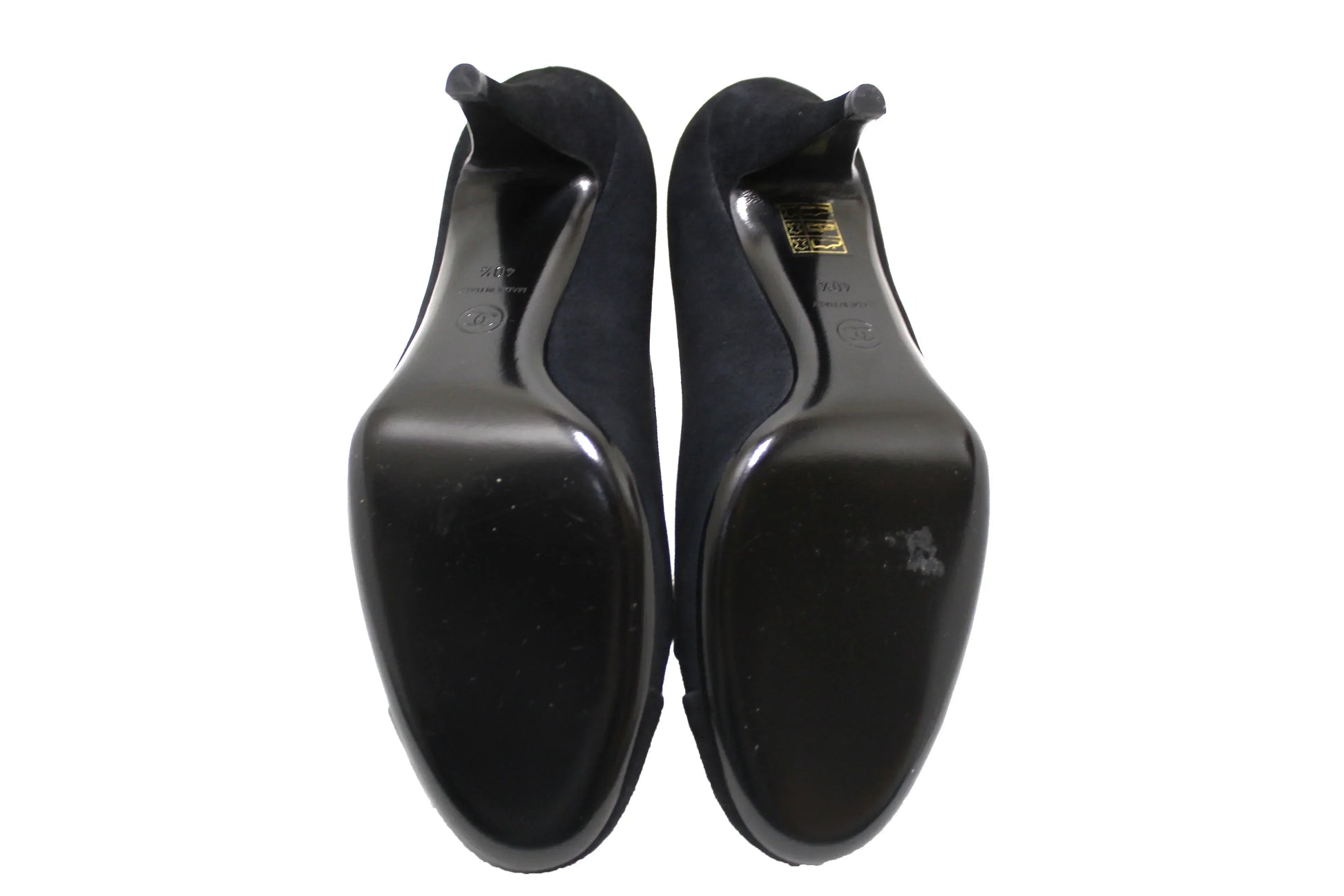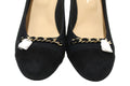 NEW Chanel Black Navy Blue Suede Cap Toe Chain CC Pumps Size 40.5