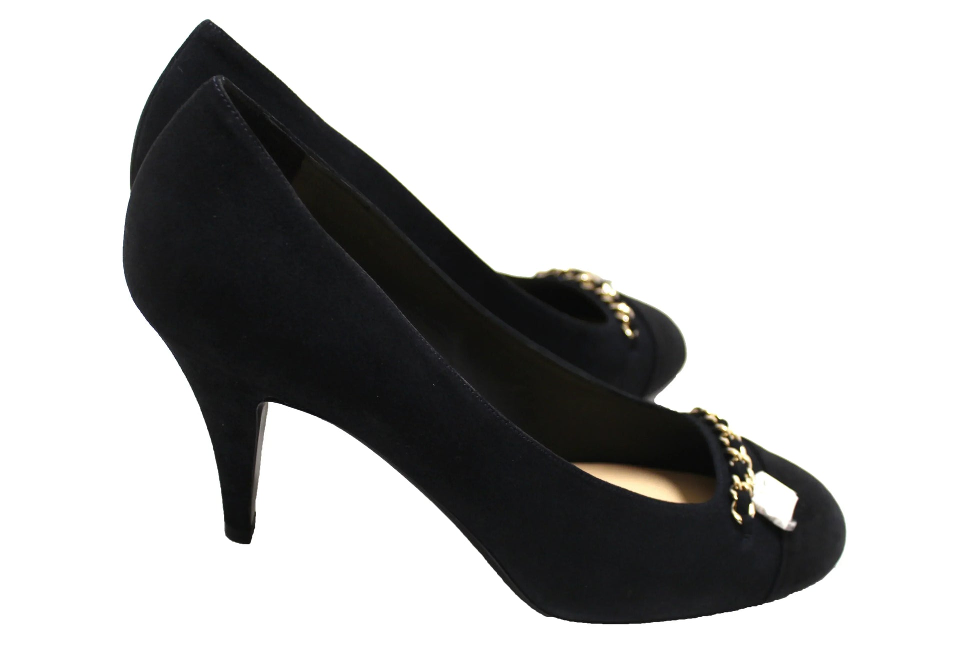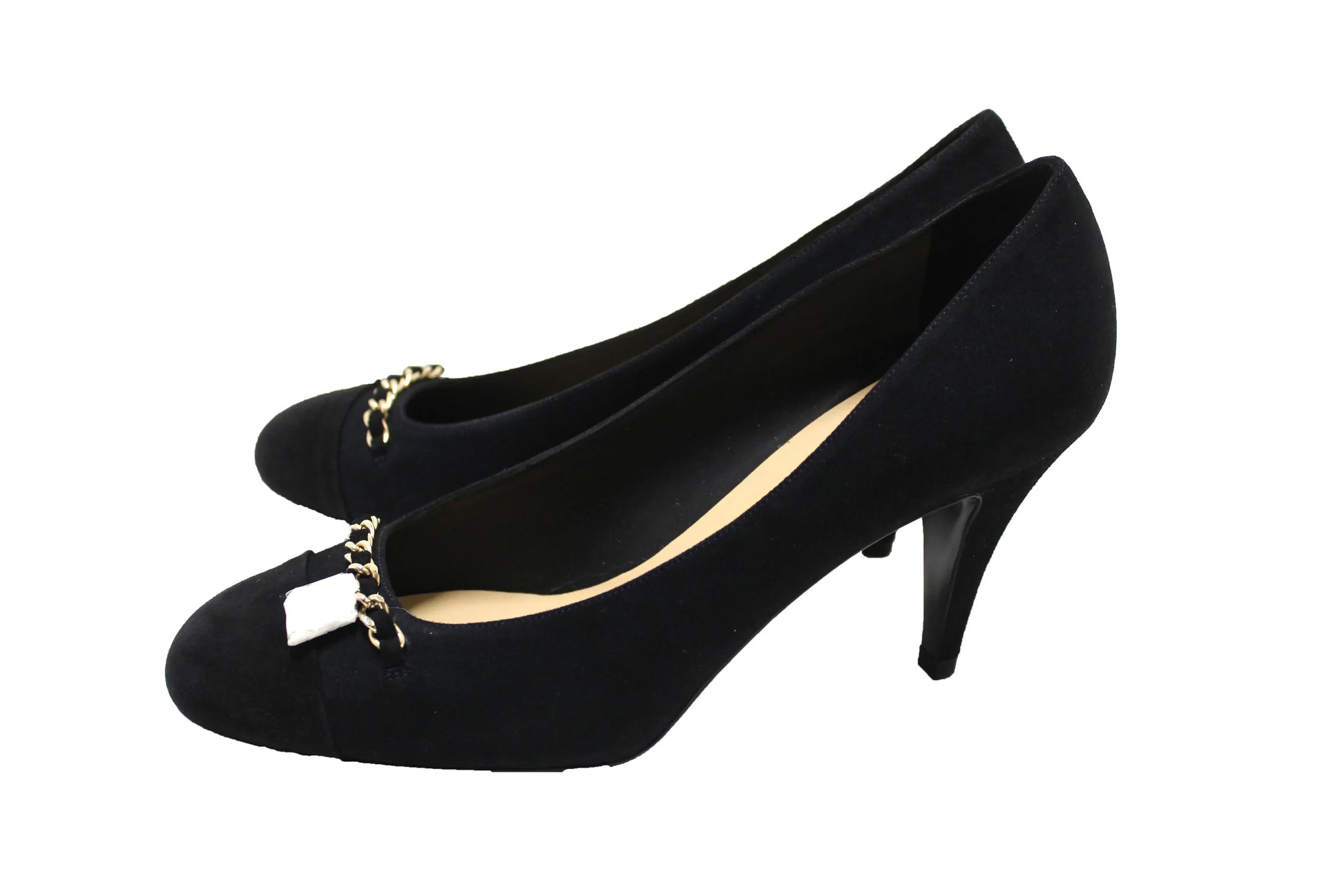 NEW Chanel Black/Navy Blue Suede Cap Toe Chain CC Pumps Size 40.5