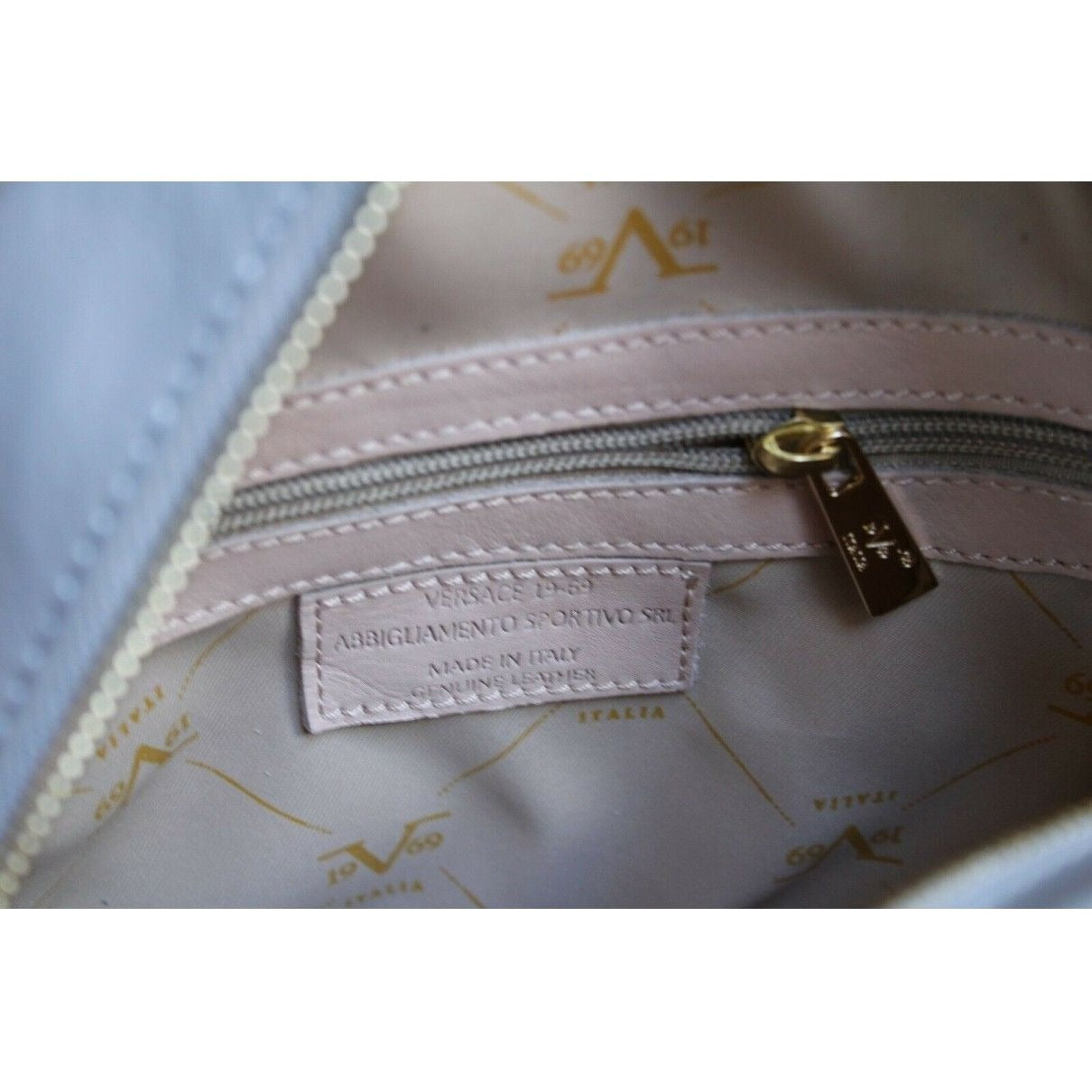 Inside, it is lined with a light gray fabric with the Versace logo printed in gold and it comes with its dust bag. There is a zipped and slippery inside pocket. It has a chic and mod style that could easily take you from day to night! Don't miss this brand new designer piece from Versace!