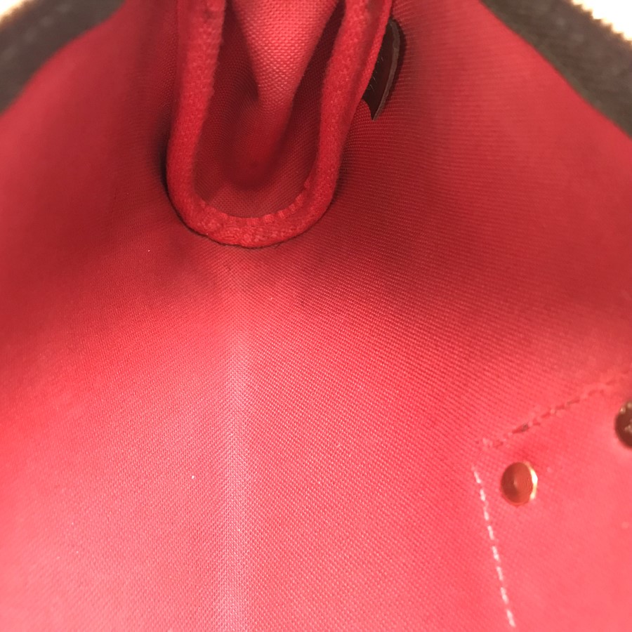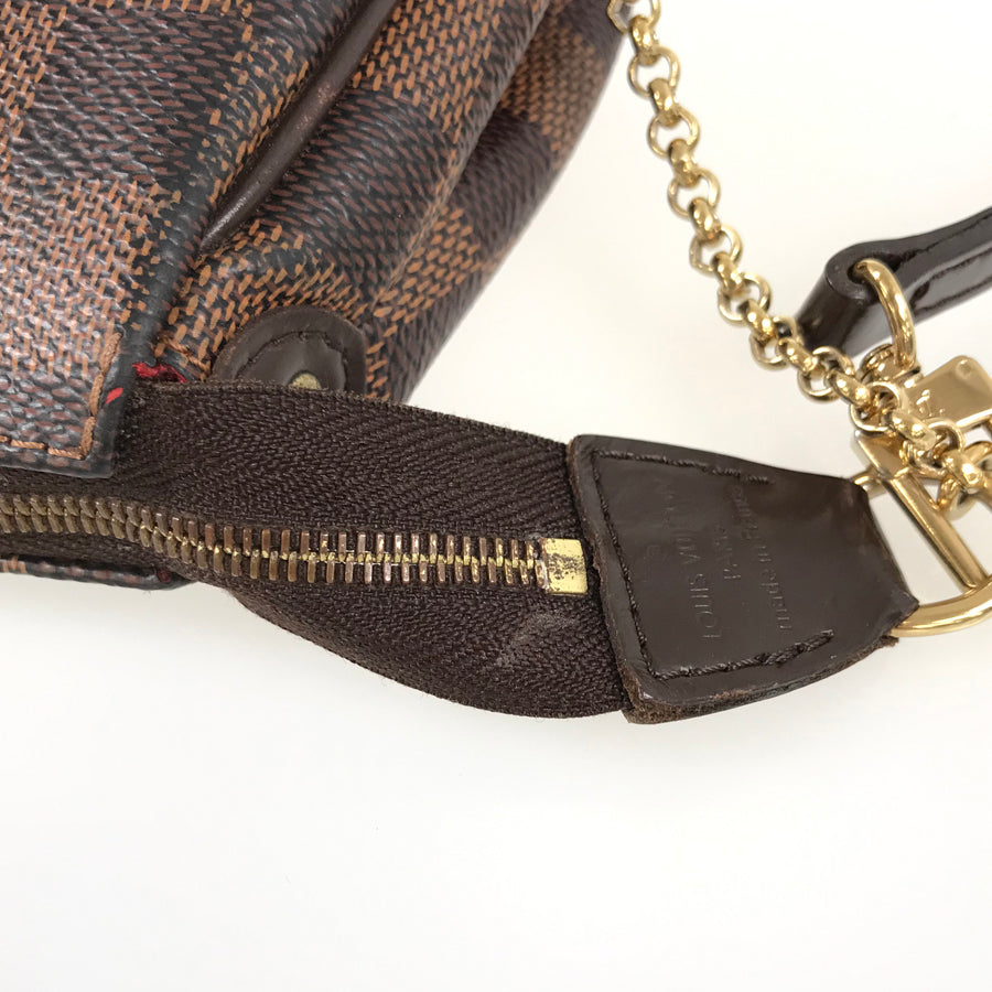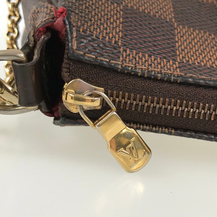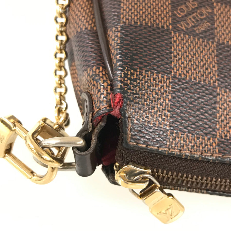 There are small scratches and peeling plating on the hardware, and Discolors on the chain joint.