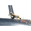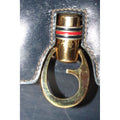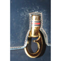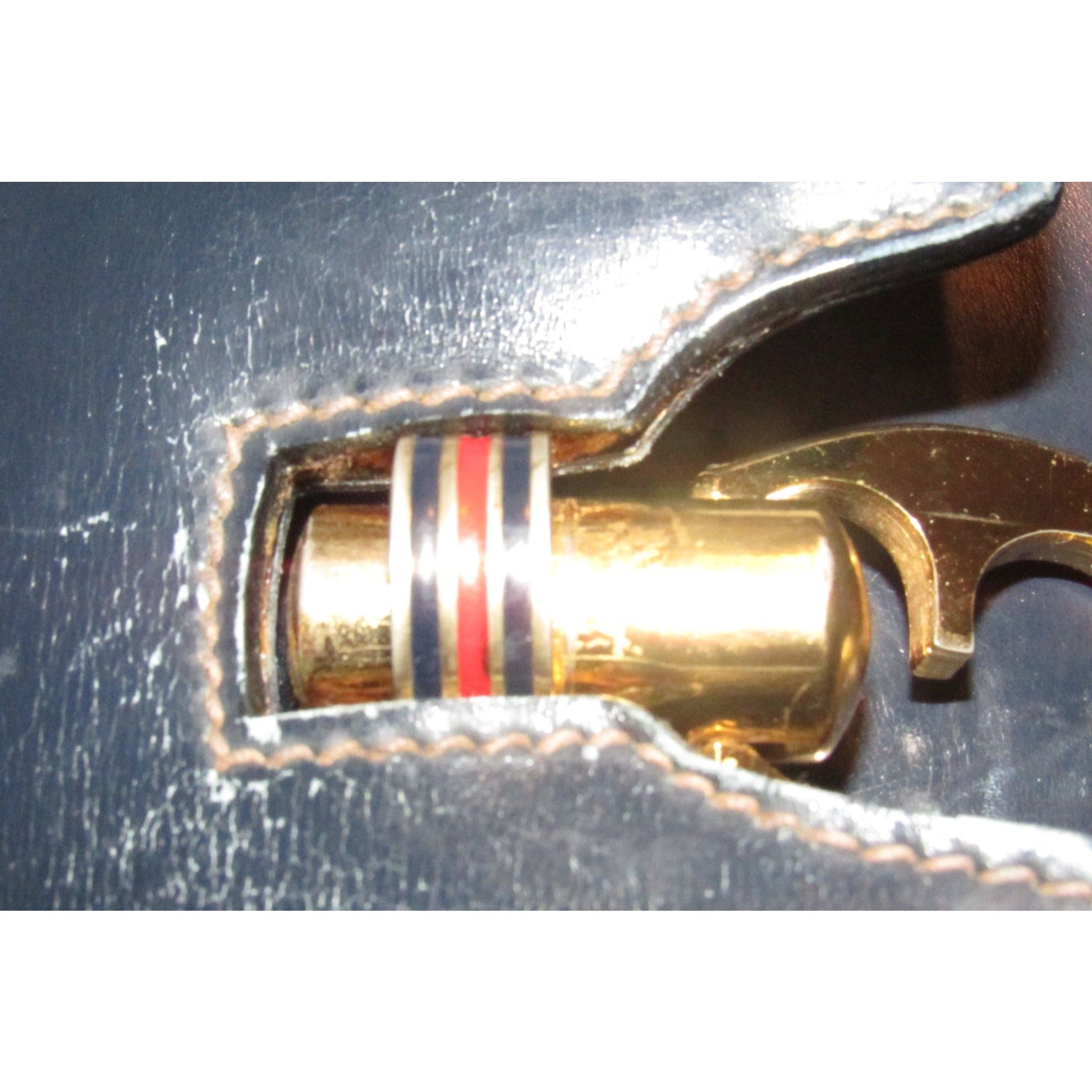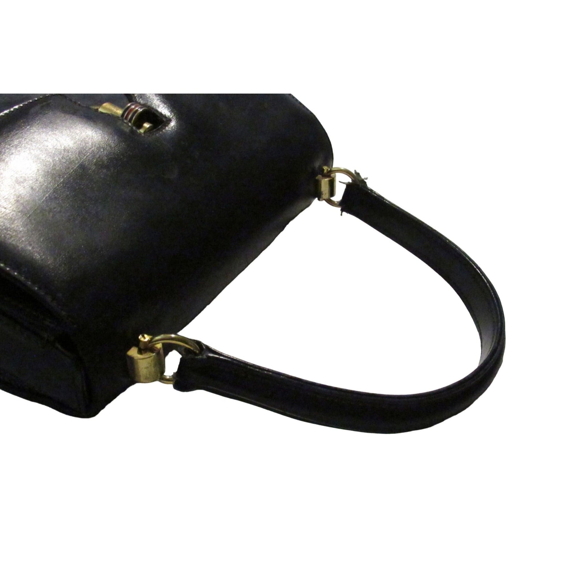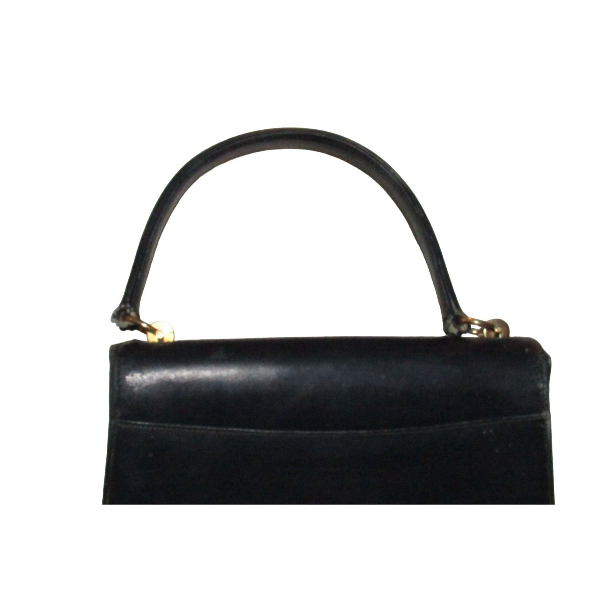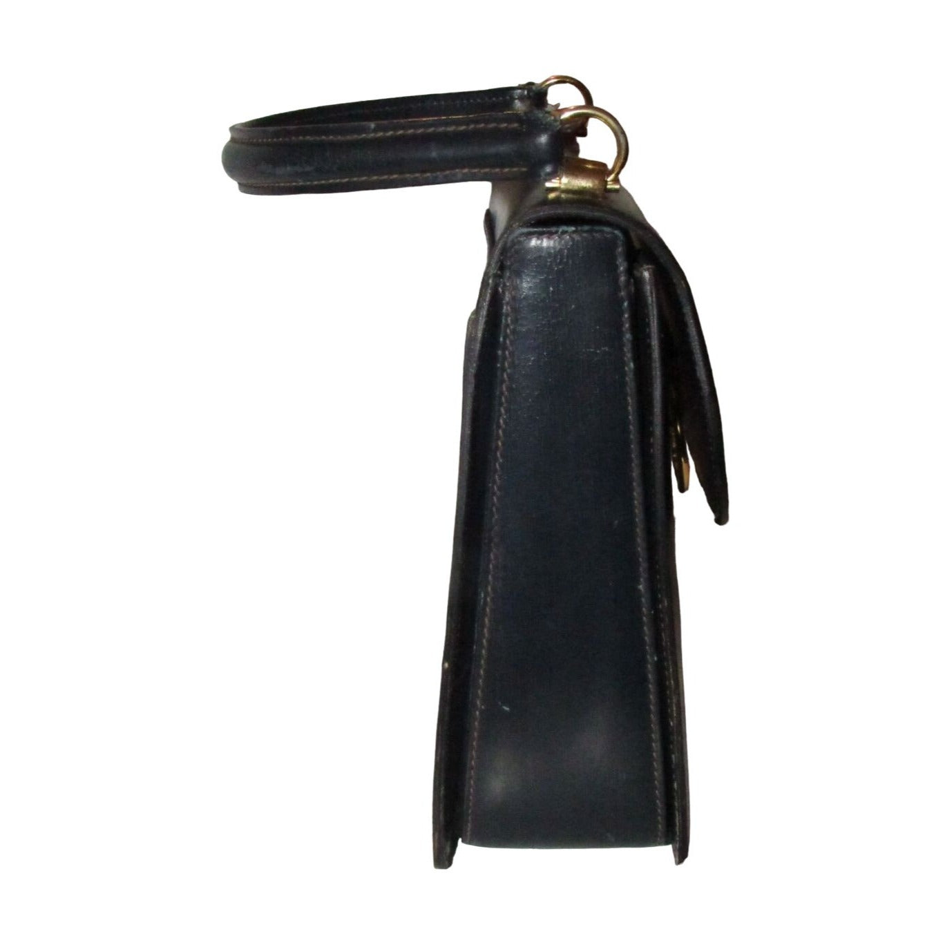 One of a kind, early Gucci, 1960's mod, hard and boxy, structured, navy leather, top handle shoulder bag with gold, equestri