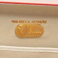 The interior is very clean tan suede leather. There is one compartment and a pocket inside. Above the pocket, It has a gold engraved plaque with Gucci, Made in Italy and mod breve 4976B/82 embossed in gold. Don't miss out!
