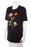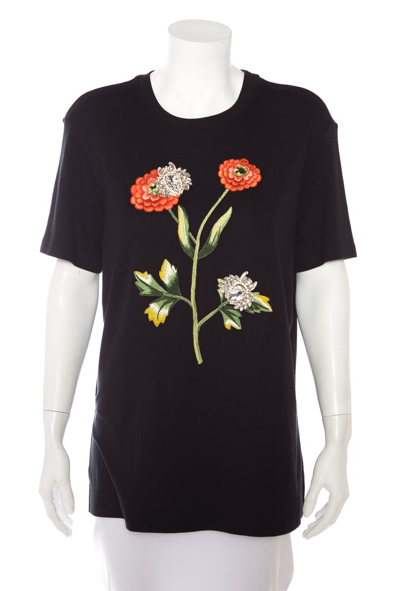 Oscar de la Renta Black Embellished and Flower Embroidered T-Shirt SZ M