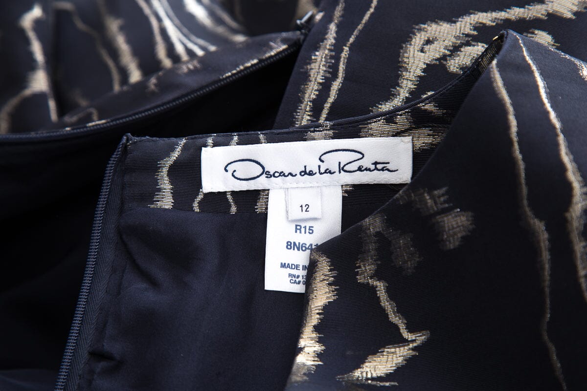 Oscar de la Renta Navy & Gold Abstract Dress SZ 12