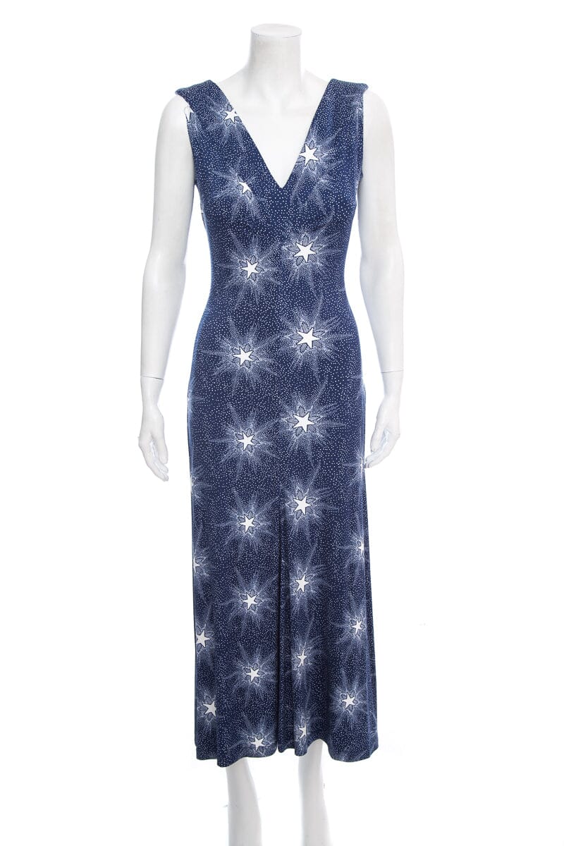 Paco Rabanne Blue Star Print Jersey Maxi Sleeveless Dress SZ XS