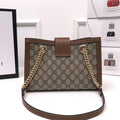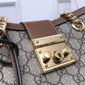 A structured shoulder bag in GG Supreme canvas with a strap that secures with a key lock closure pulled straight from the archives. The key is placed in a detachable leather key case.
