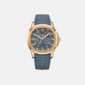 Crafted in 18k rose gold, the Aquanaut 5261R-001 features a blue-gray dial with the signature embossed pattern, creating a contemporary and refined aesthetic. The layout seamlessly integrates the day, date, month, and moon phase indicators, offering both functionality and elegance. At 39.9mm, the rose gold case strikes a balance between boldness and versatility, paired with a matching blue-gray composite strap for durability and style.