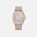 Introduced as part of the esteemed Aquanaut collection, the 5072R-001 stands out with its elegant aesthetics and robust performance. Crafted in rose gold, this watch features a captivating engraved mother-of-pearl dial, adorned with a checkerboard pattern in two shades of beige. The bezel is meticulously set with 40 baguette diamonds, totaling approximately 2.76 carats, adding a touch of opulence to its sporty elegance.