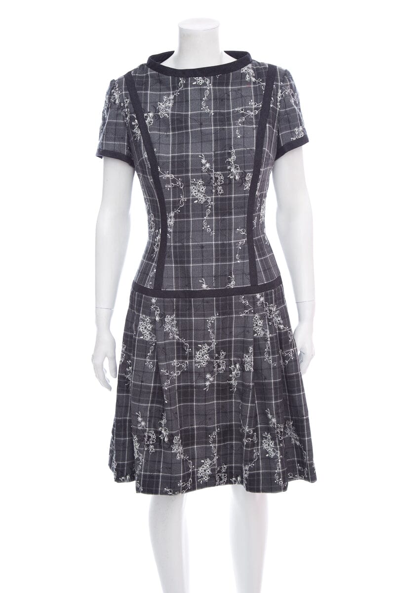 Peggy Jennings Grey Plaid Dress with White Floral Embroidery. This item is new with tags.