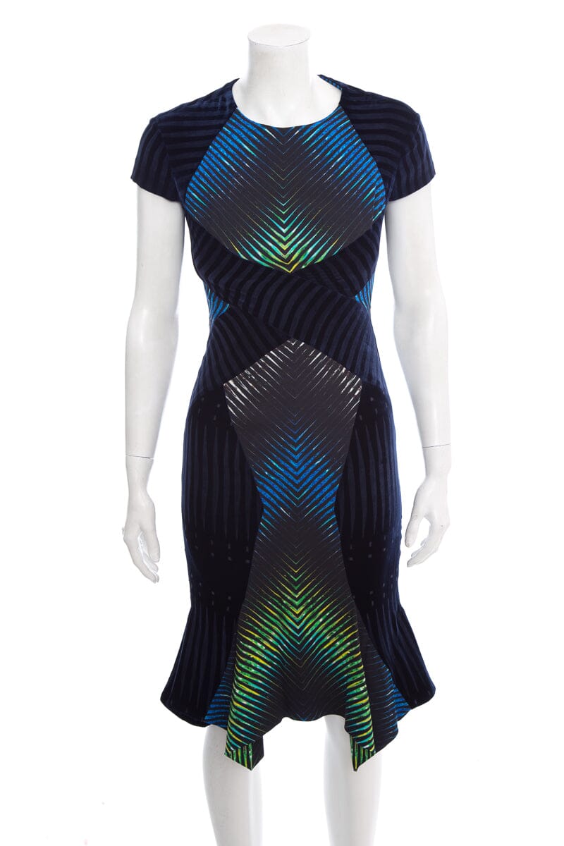 Peter Pilotto Blue Stripe and Velvet Short Sleeve Dress SZ 6