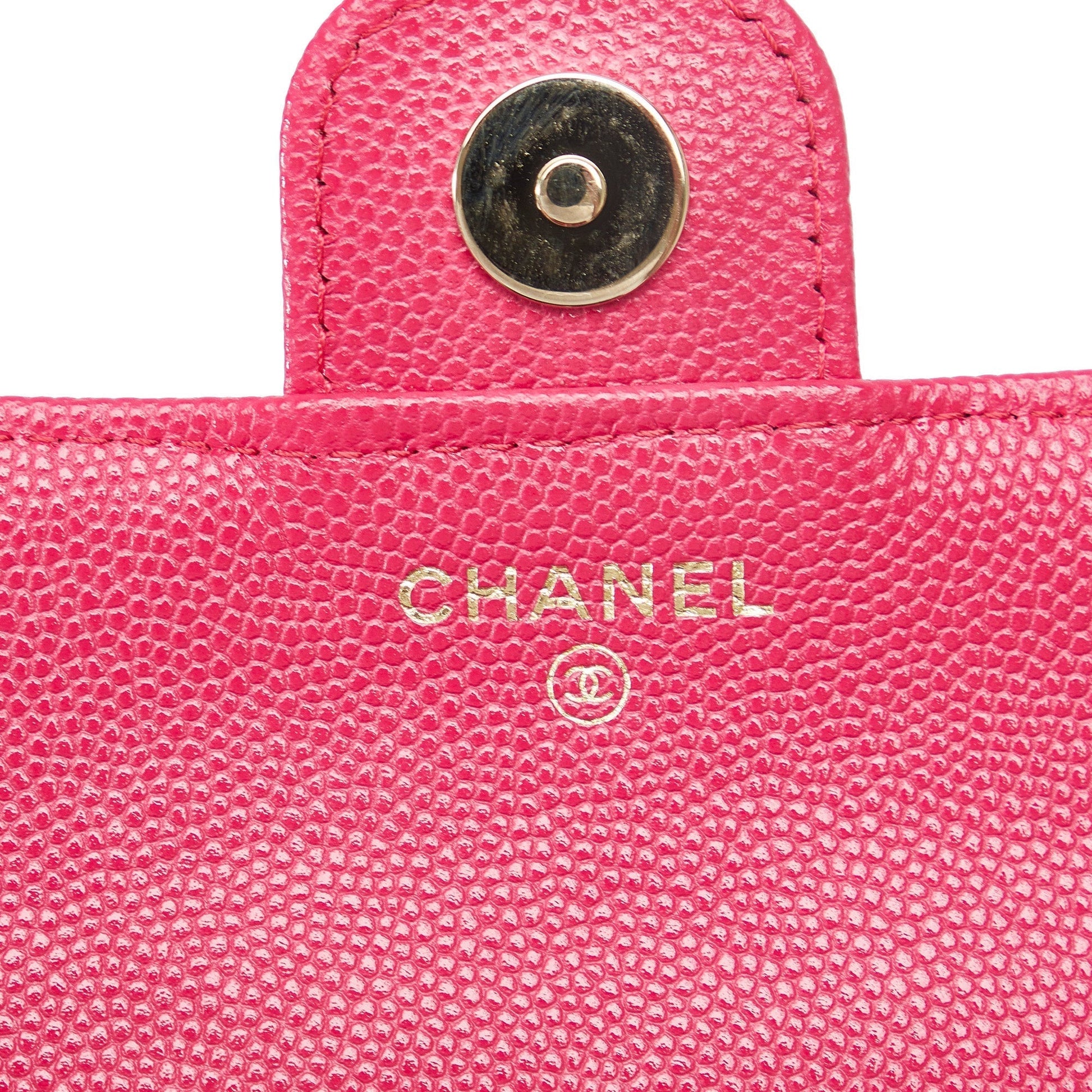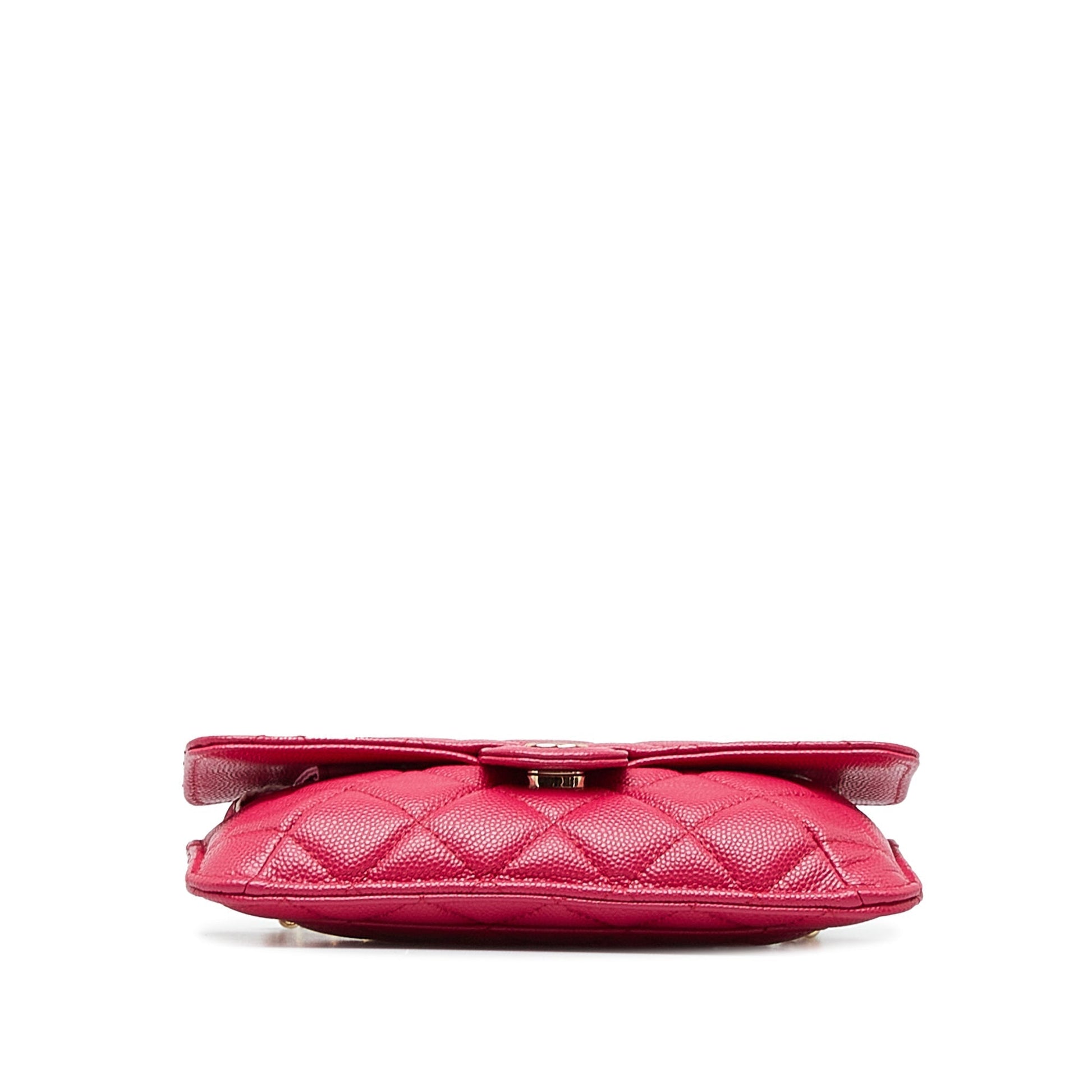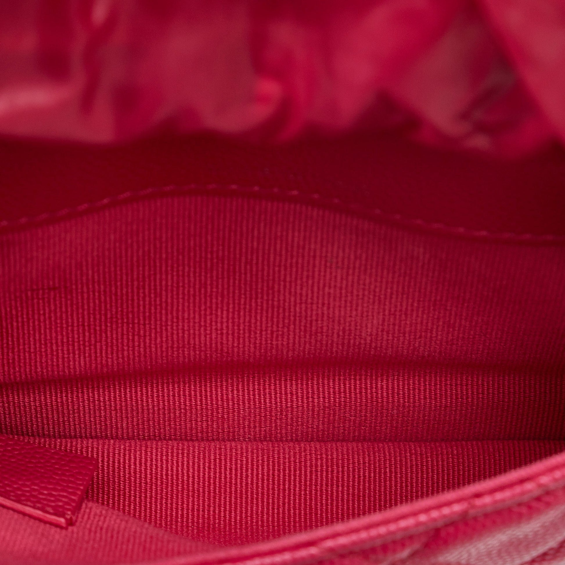 Product Details: Pink Chanel Quilted Caviar Foldable Printed Fabric Tote with Chain. This tote bag features a nylon body that folds into a caviar leather flap bag, flat nylon straps and a woven chain link strap, and an open top with magnetic snap closure. 15" L x 13.8" W x 2" D, 10.2" drop. Serial number 31633227.