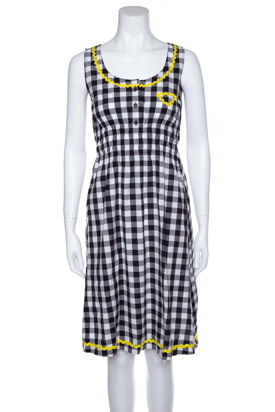 Prada 2022 Black/White Plaid Dress with Yellow Scallop Detail. This item is in very good condition.