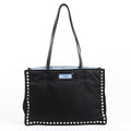 Prada Bag Etiquette Medium Black Blue Studded Nylon Tote