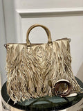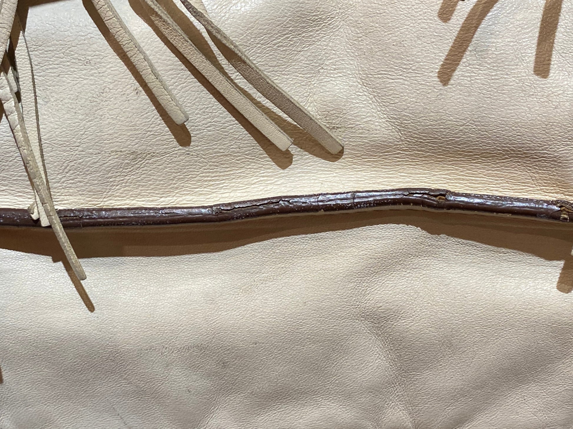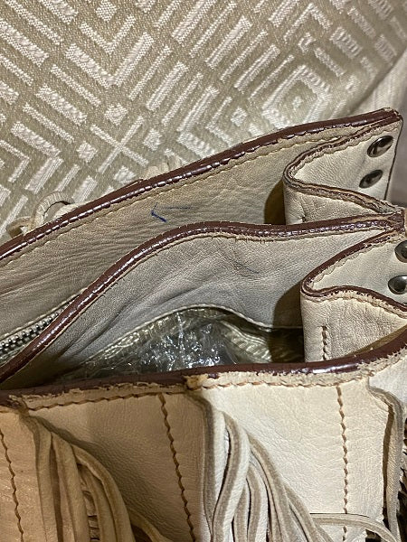 - Material: Beige Nappa Calf Leather with Fringe Details