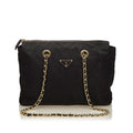 Prada Black Nylon Fabric Quilted Chain Tote Bag Italy