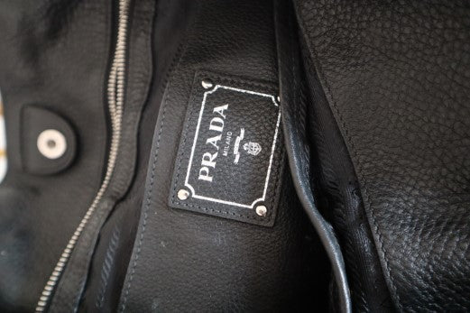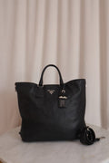 Prada Black Vitello Daino Side Zip Tote Large Bag