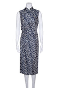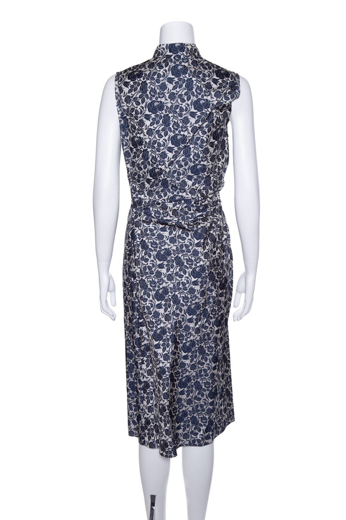 Prada Blue and White Floral Ruched Knee Length Dress SZ 44