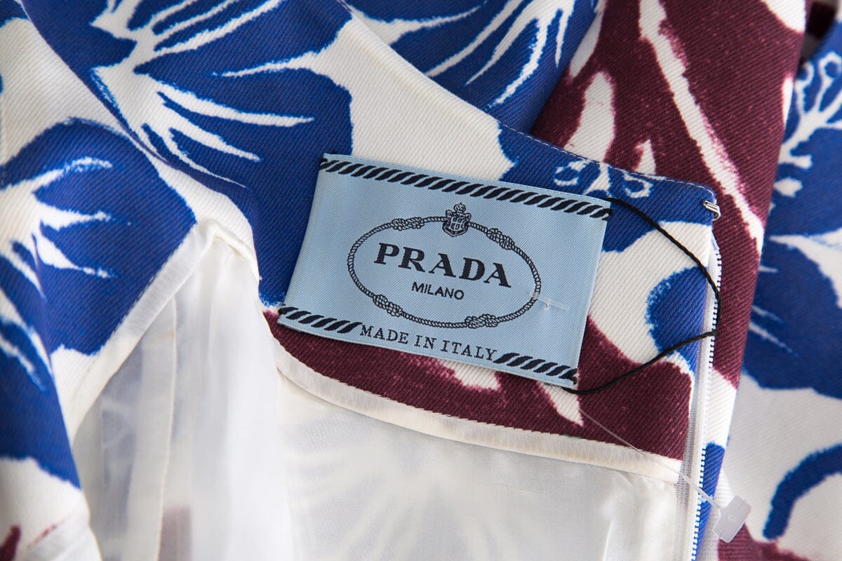 Prada Blue/White Sleeveless Large Floral Cotton Dress. This item is in very good condition.