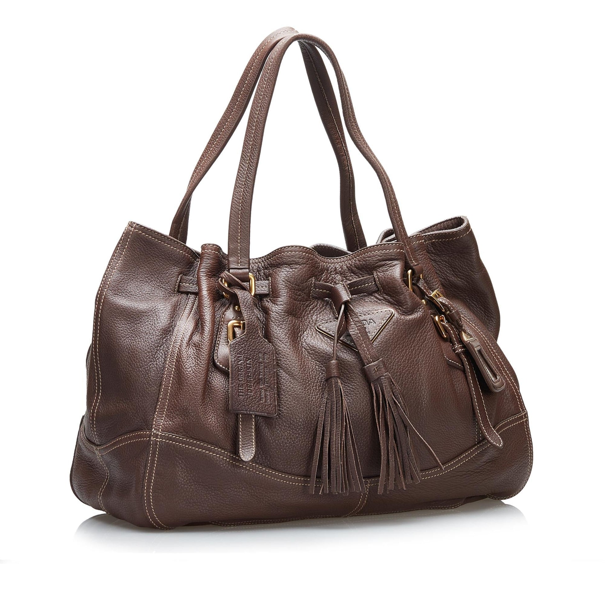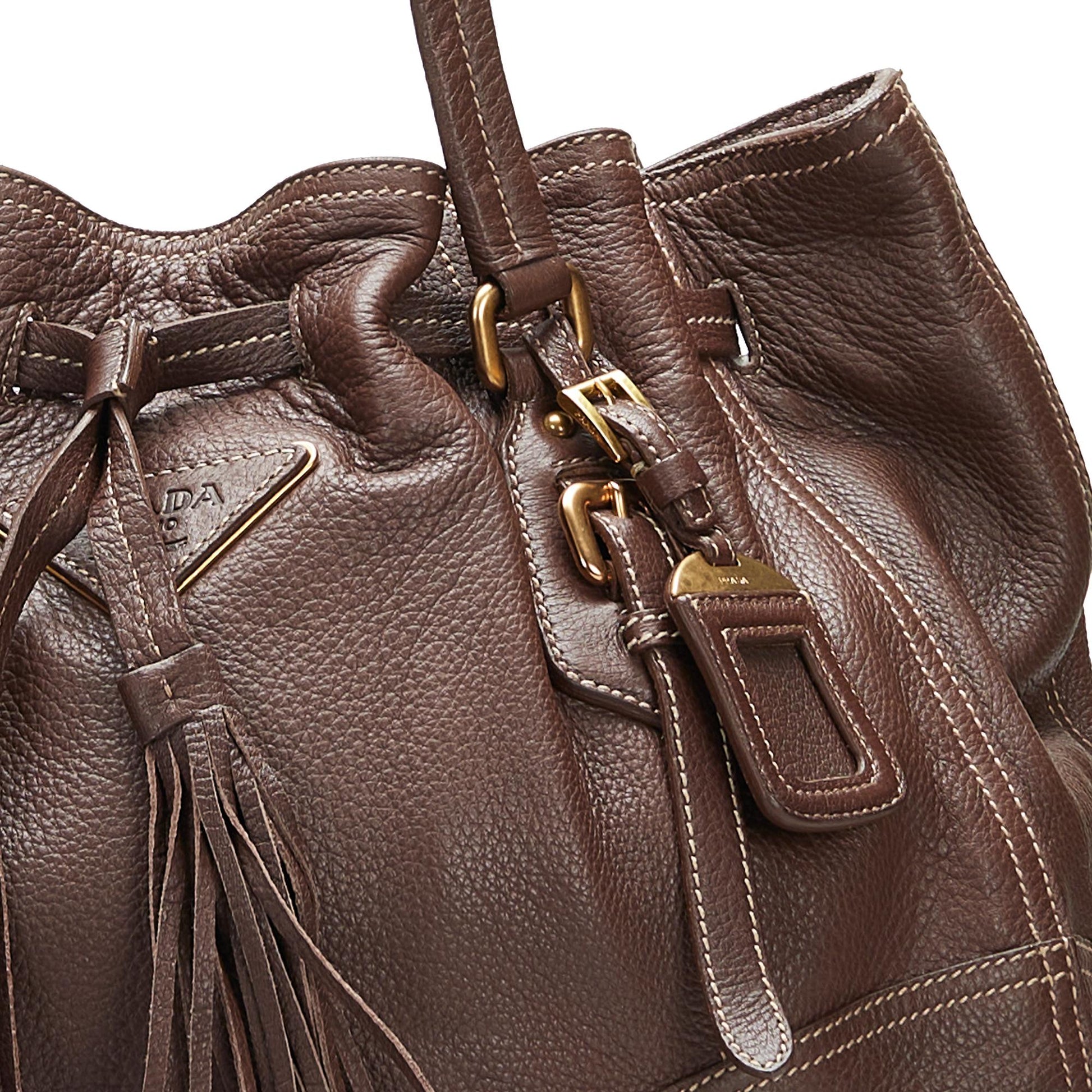 Prada Cervo Drawstring Leather Tote (SHG-Fe2KbH)