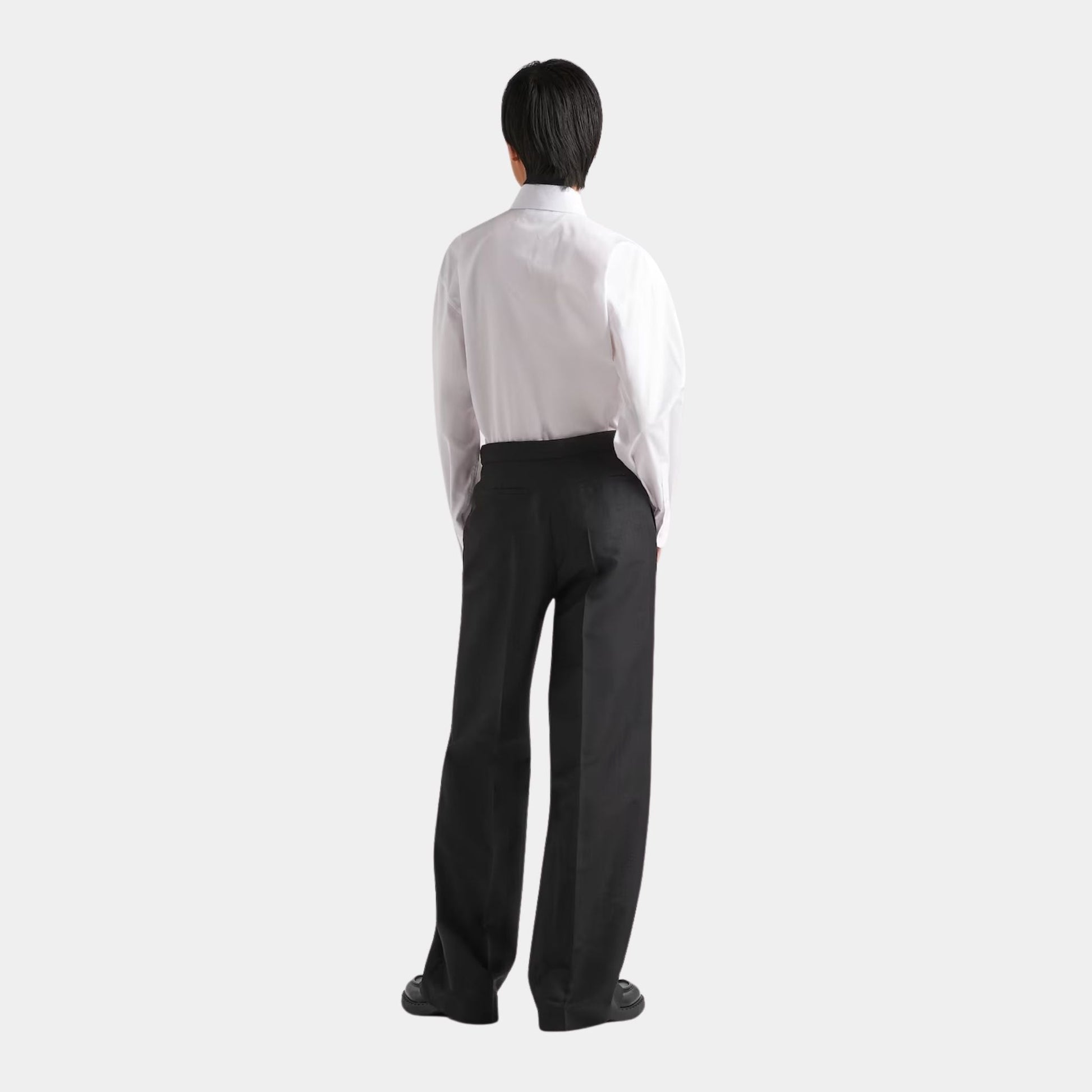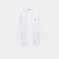 Crafted from 100% premium cotton poplin, this shirt offers exceptional softness, breathability, and durability. The straight fit and structured shirt collar maintain a polished appearance, while the front button closure and shirt cuffs add classic menswear-inspired elements. The front patch pocket is subtly accented with the enameled metal triangle logo, an iconic Prada touch that elevates the minimalist design.