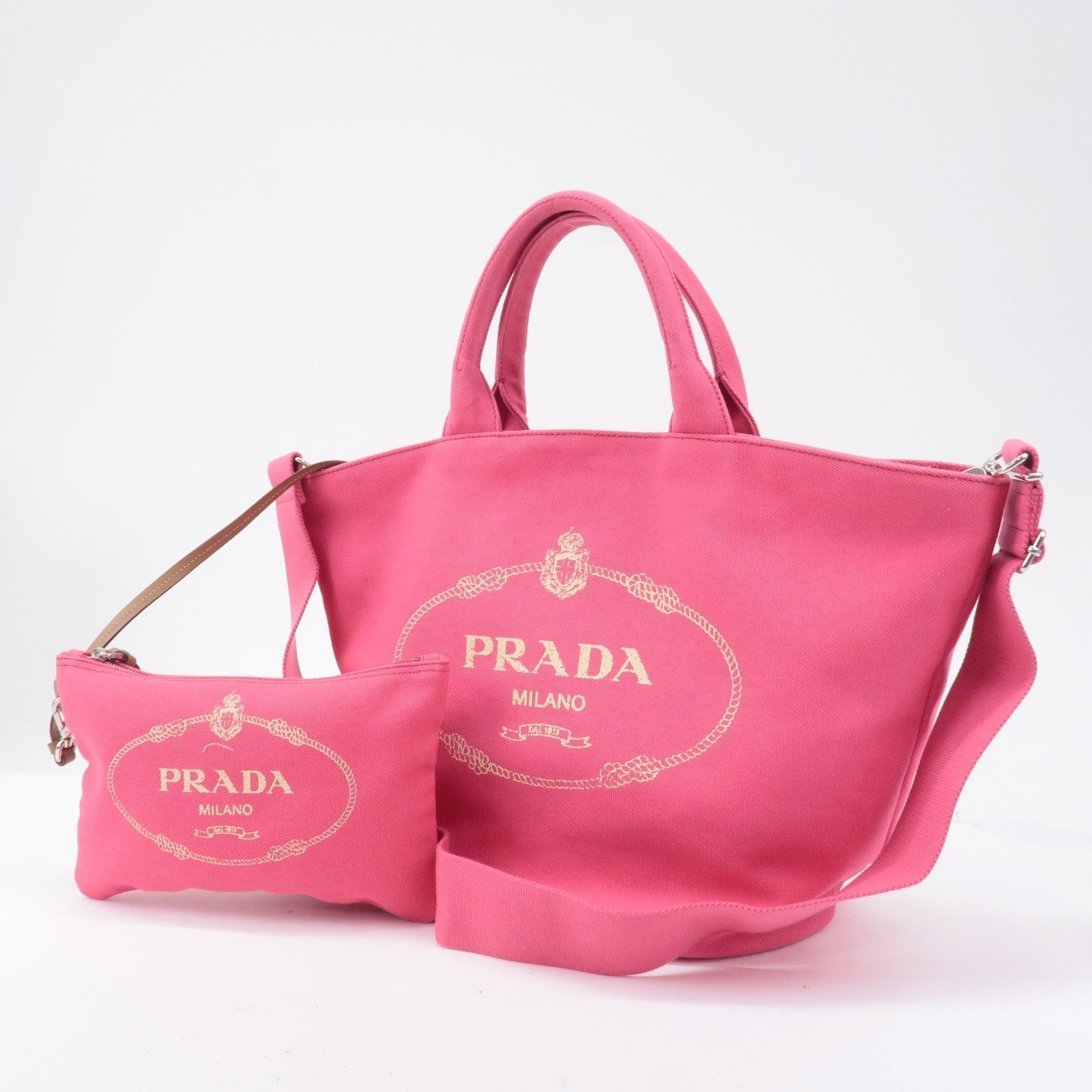 Prada Logo Canapa Canvas Leather Fabric 2Way Bag Pink 1BG163